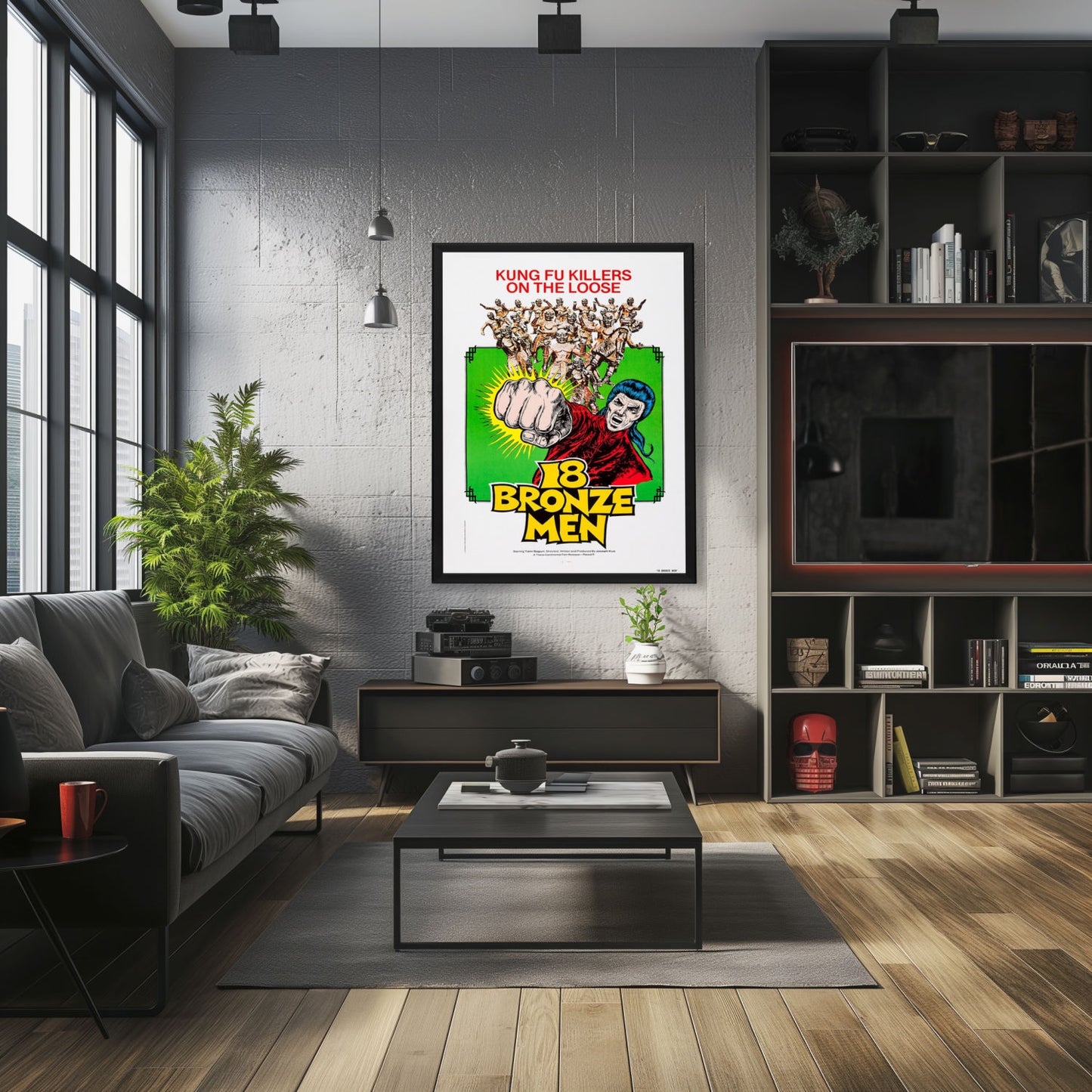 Own a piece of martial arts movie history with this beautifully framed 18 Bronzemen poster, a testament to the enduring spirit and artistry of the genre.