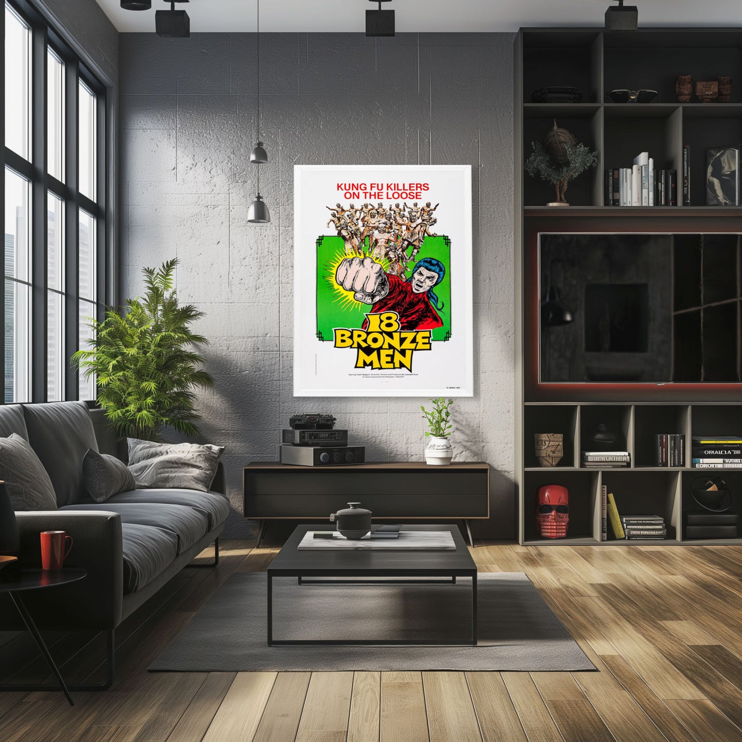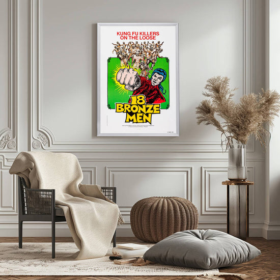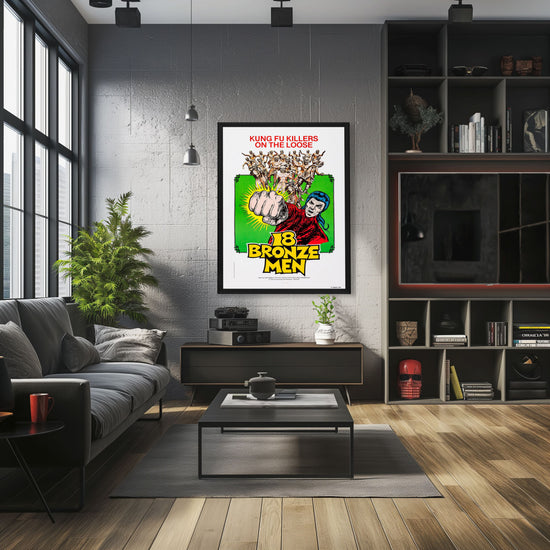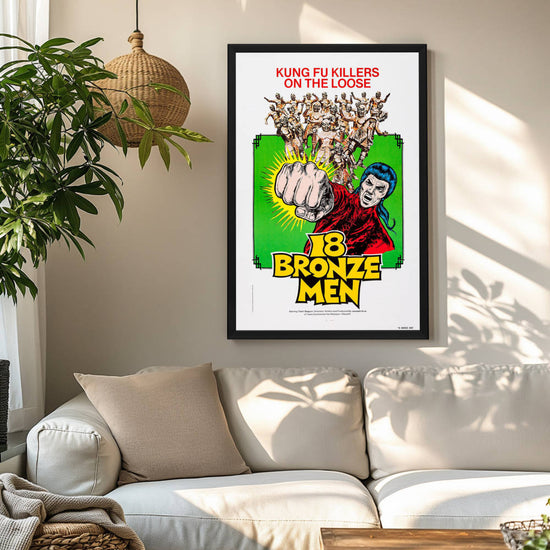 With its easy-to-use snap frame technology, the Snapezo Professional Movie Poster Frame allows you to change out your movie poster without the need for tools or removal from the wall. The Snapezo frame's sleek design complements the classic aesthetic of the 18 Bronzemen poster, ensuring it will stand out whether it's displayed in a home theater, a martial arts studio, or a collector's private exhibition.