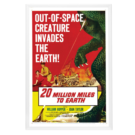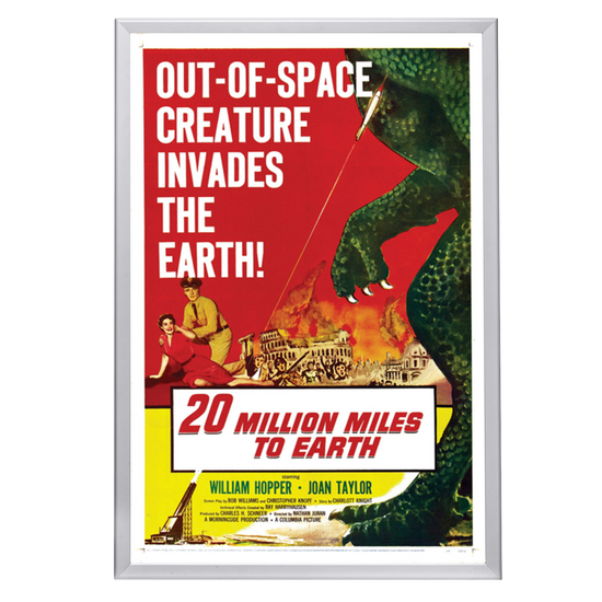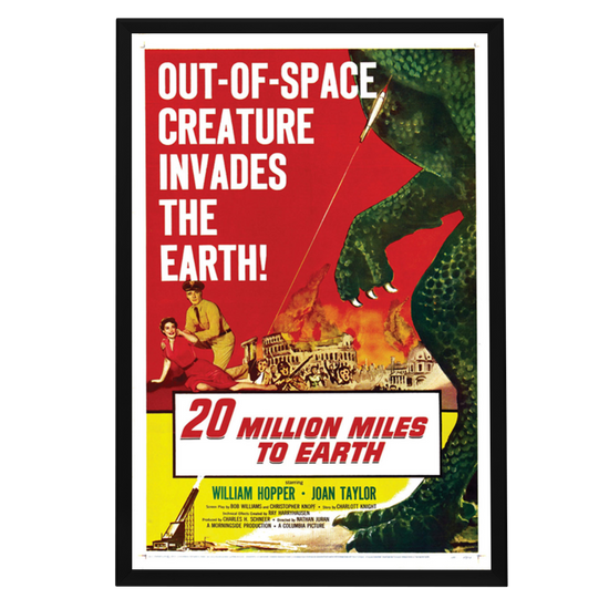 Unveil the splendor of a classic science fiction saga with the framed movie poster of "20 Million Miles to Earth" (1957). This cult classic, renowned for its groundbreaking stop-motion animation by the legendary Ray Harryhausen, has captured the imaginations of sci-fi aficionados for decades. The poster, which vividly portrays the iconic clash between the Ymir creature and humanity, now finds its match in the superior presentation offered by the Snapezo Professional Movie Poster Frame.