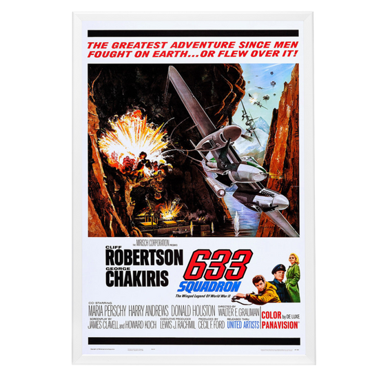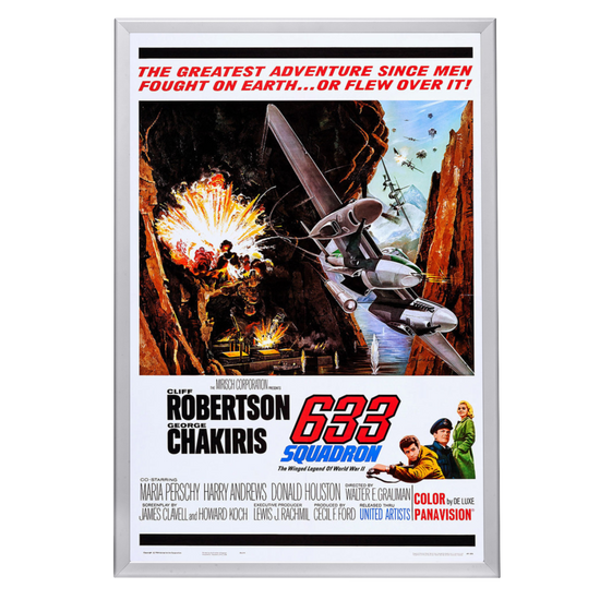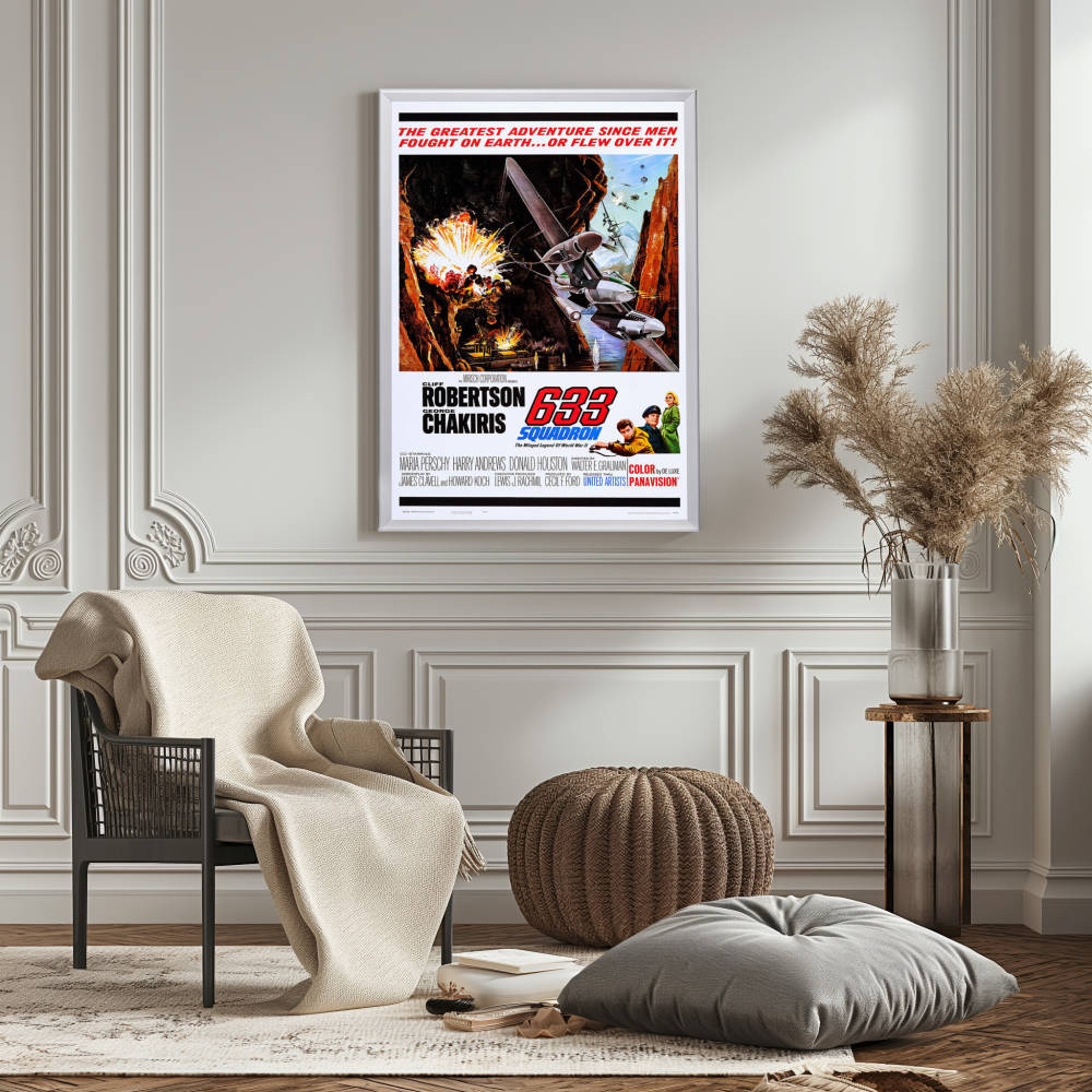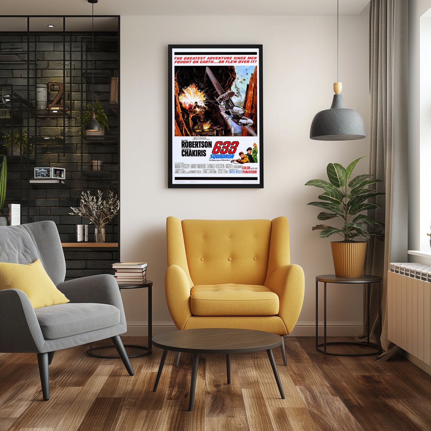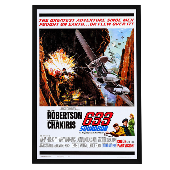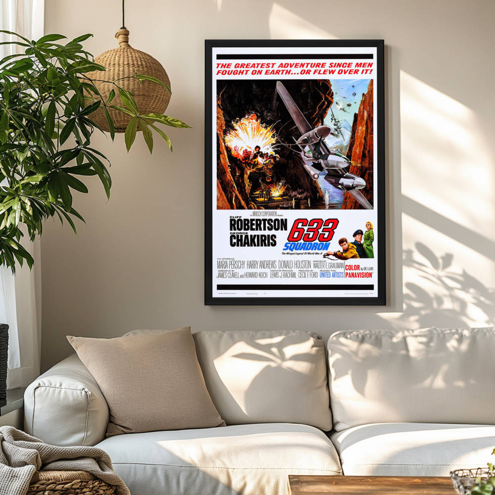 Own a piece of cinema history with the framed "633 Squadron" movie poster. High-quality reprint in a professional Snapezo frame—antiglare for perfect display.