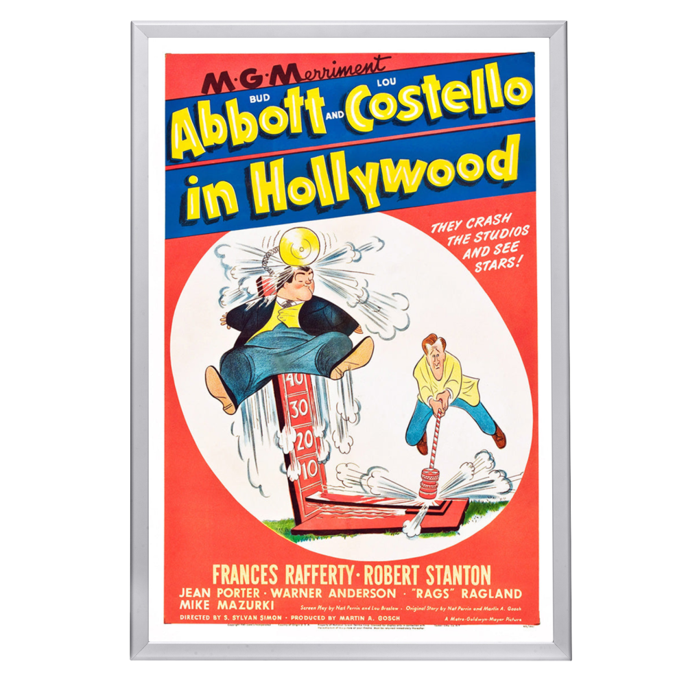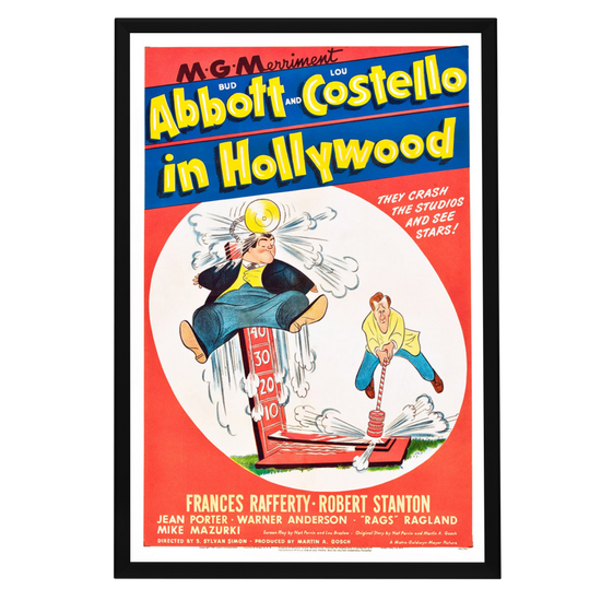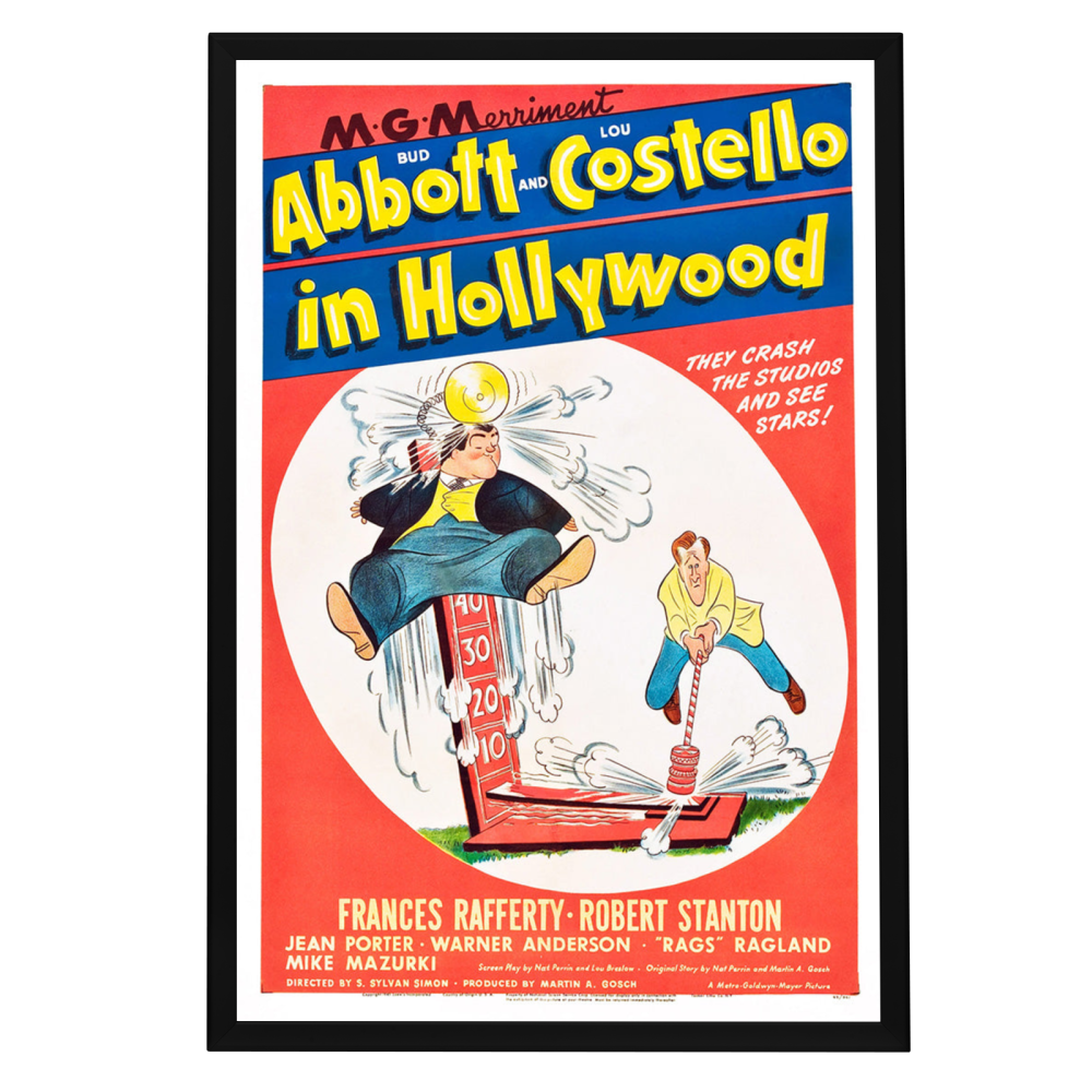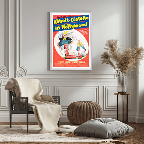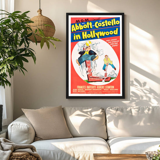 Step into the golden era of comedy with our exquisitely framed "Abbott and Costello In Hollywood" movie poster. This 1945 classic features the iconic comedic duo in one of their most memorable silver screen escapades, capturing their legendary antics as they attempt to make it big in Tinseltown. This poster serves as a tribute to the comedic genius of Bud Abbott and Lou Costello, whose influence on the genre remains unparalleled.
