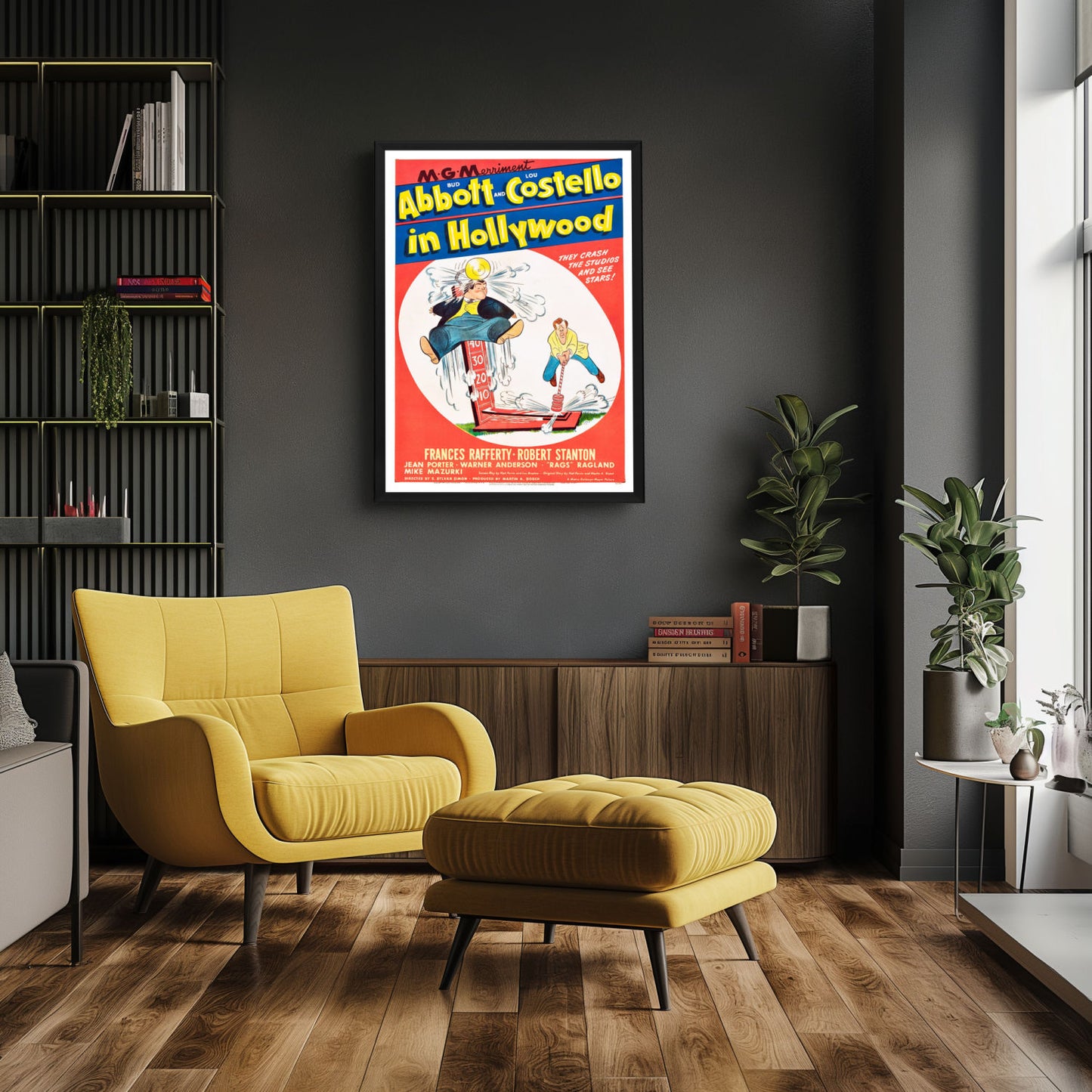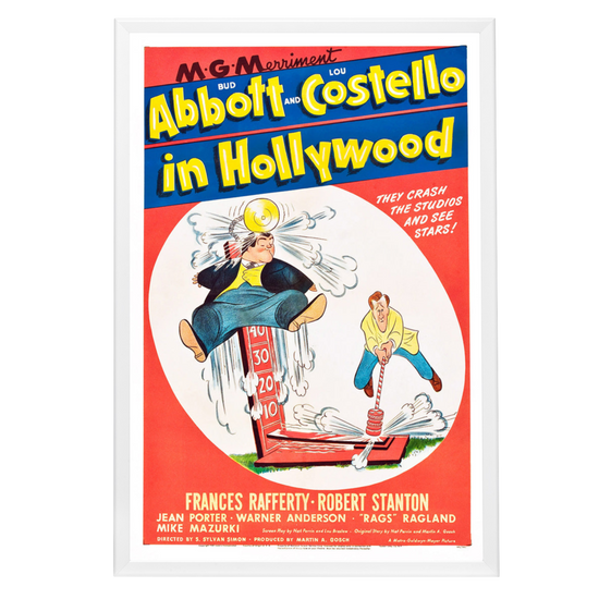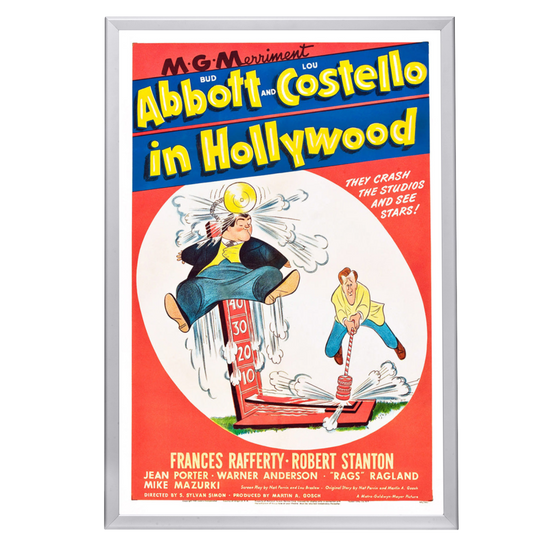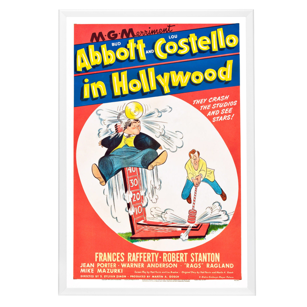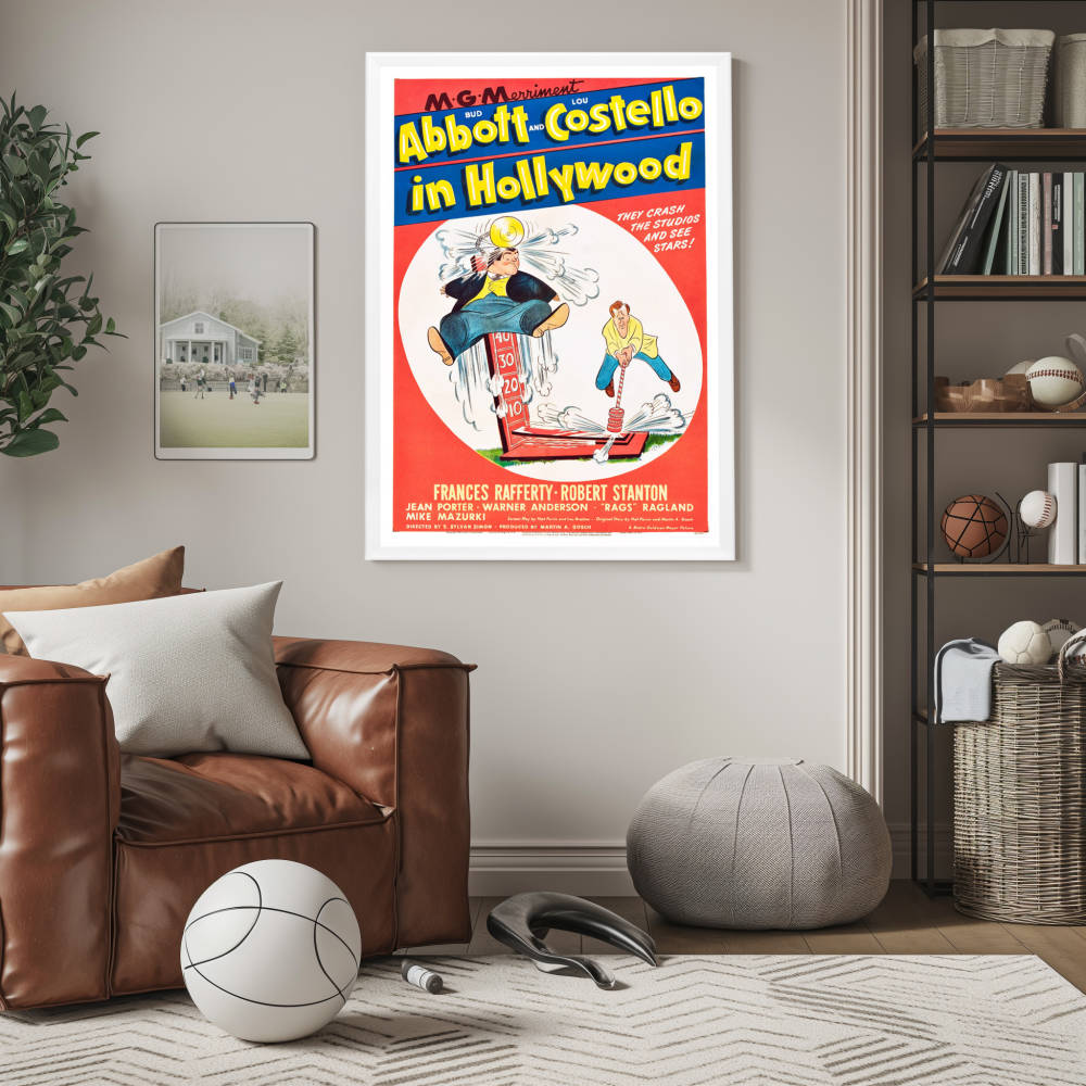 Step into the golden era of comedy with our exquisitely framed "Abbott and Costello In Hollywood" movie poster. This 1945 classic features the iconic comedic duo in one of their most memorable silver screen escapades, capturing their legendary antics as they attempt to make it big in Tinseltown. This poster serves as a tribute to the comedic genius of Bud Abbott and Lou Costello, whose influence on the genre remains unparalleled.