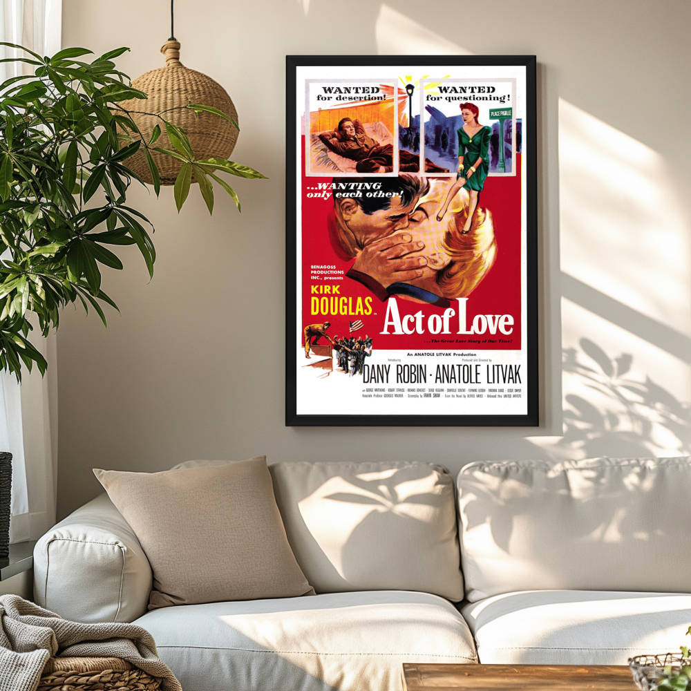 Own a piece of cinema romance with the high-quality "Act Of Love" (1953) framed poster in a Snapezo Professional Frame. Iconic design, clear antiglare cover.
