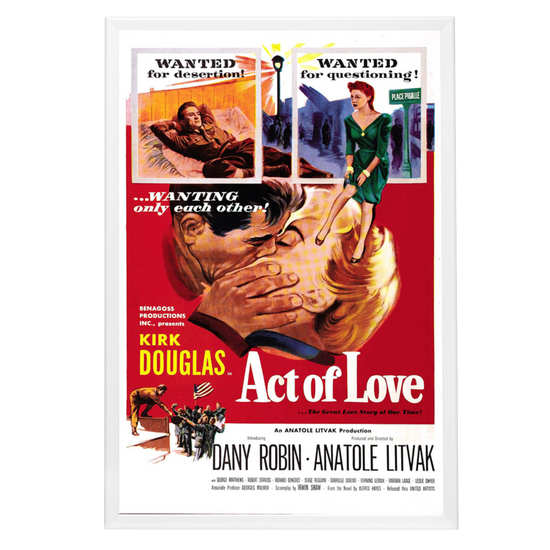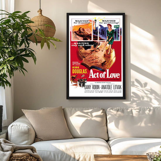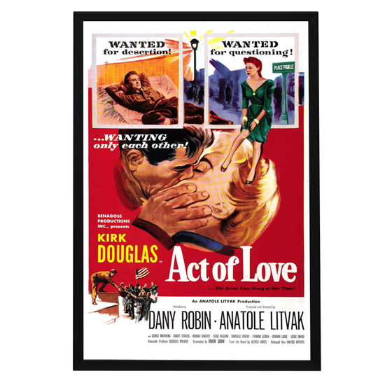 Immerse yourself in the timeless romance of Kirk Douglas and Dany Robin with the "Act of Love" (1953) framed movie poster. This exceptional piece celebrates the film's legacy and Parisian backdrop, encapsulating a story of love and sacrifice that has touched audiences for generations. It's not just a poster; it's a slice of cinematic history, presented in exquisite detail as a high-quality reprint, ensuring the rich and vibrant colors shine just as they did in the golden age of Hollywood.