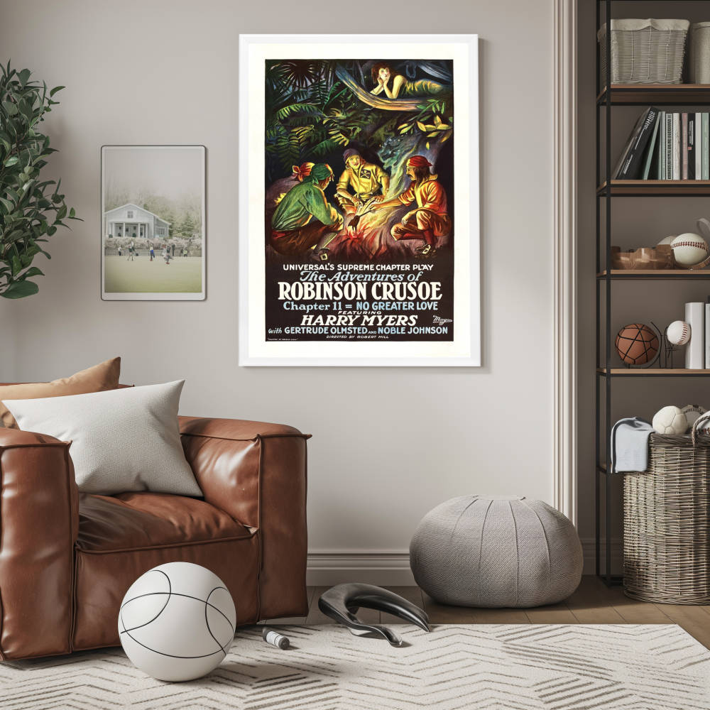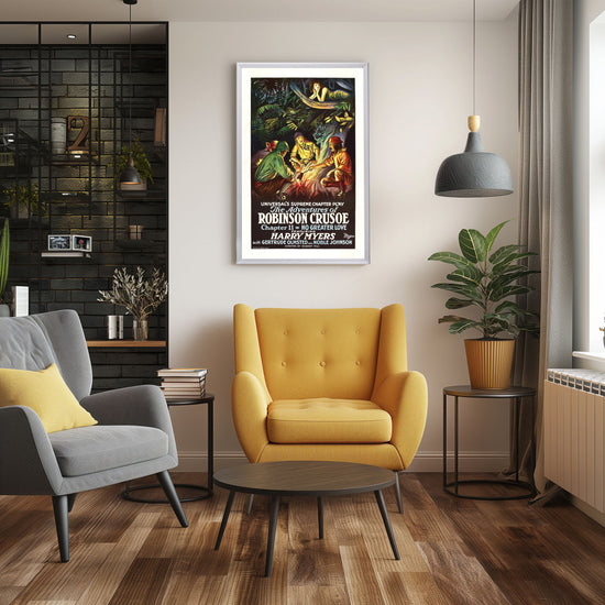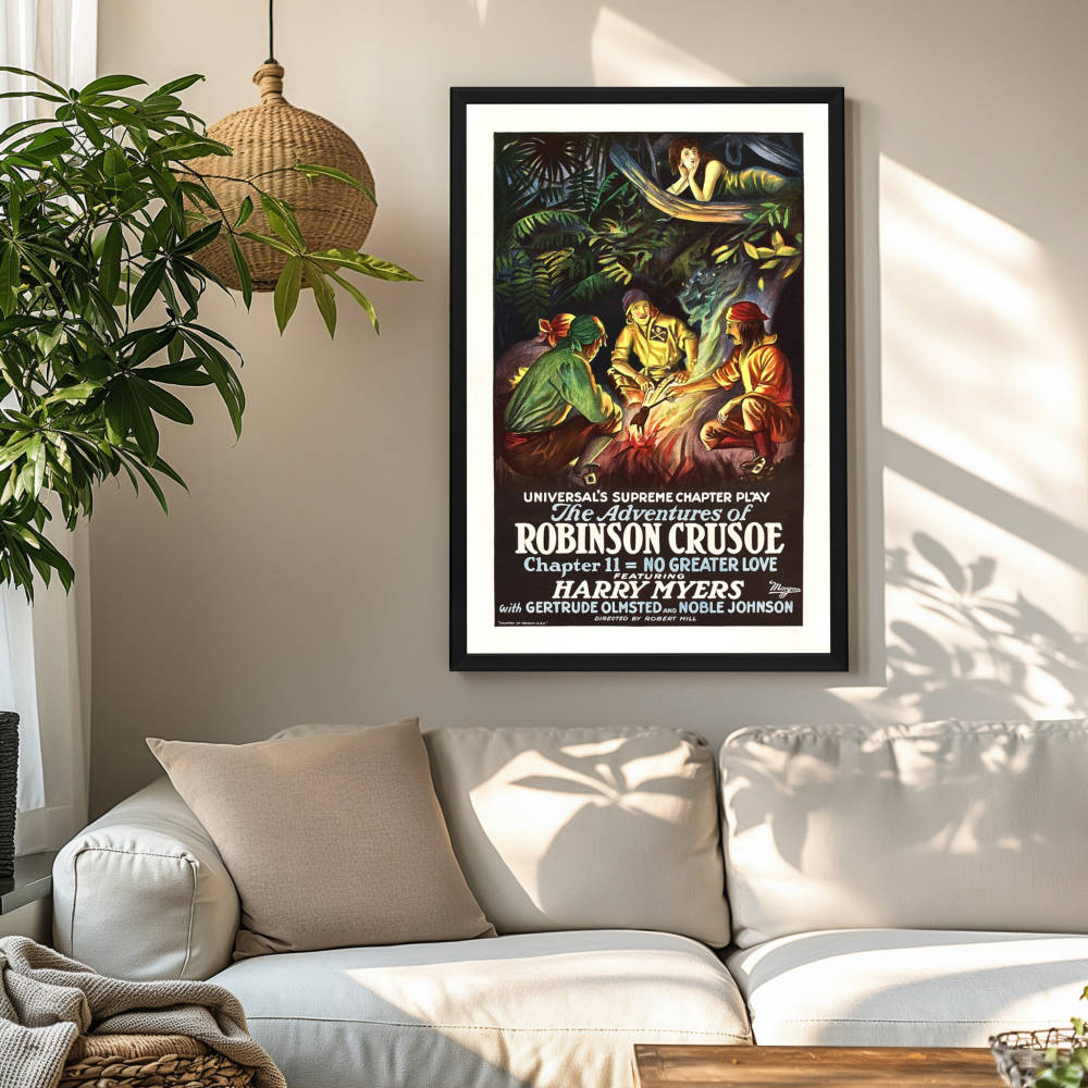 In summary, the "Adventures of Robinson Crusoe" framed movie poster is not just a nod to a bygone era but a statement piece for film buffs and art connoisseurs. It's where the nostalgia of silent film meets modern display elegance, creating a centerpiece that is both a conversation starter and a testament to cinematic heritage.