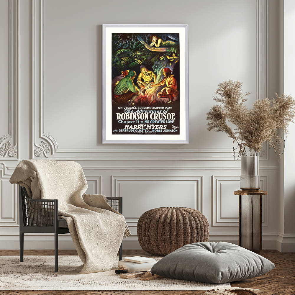 Own a piece of silent film history with the framed "Adventures of Robinson Crusoe" poster, encased in a Snapezo Professional Frame. Iconic design meets quality display.