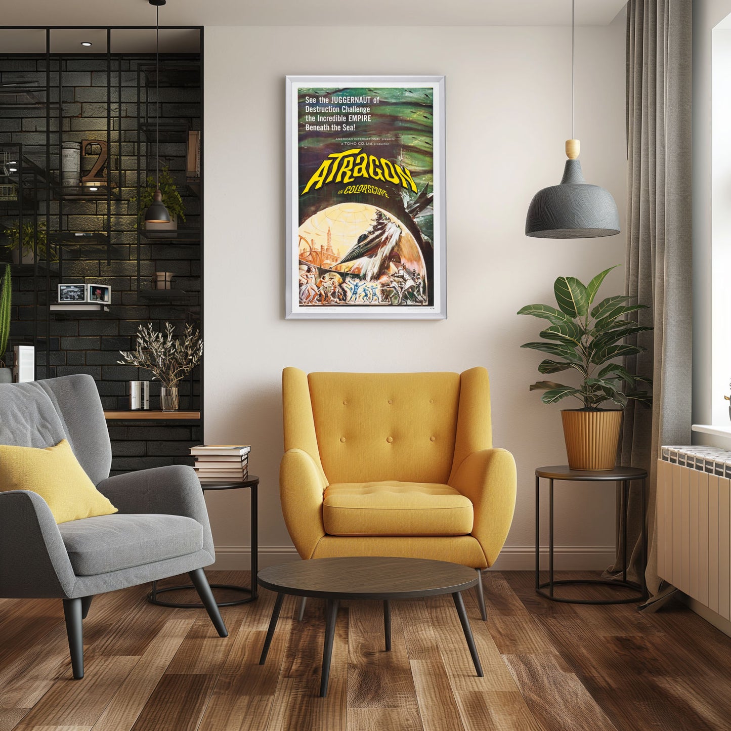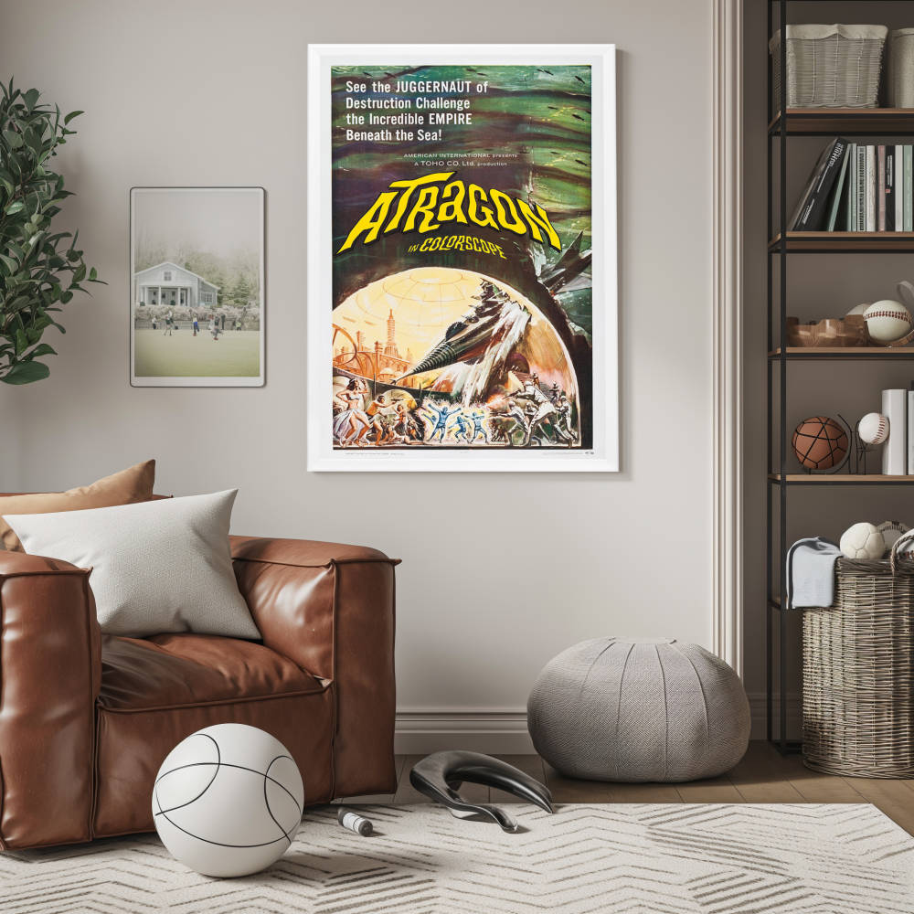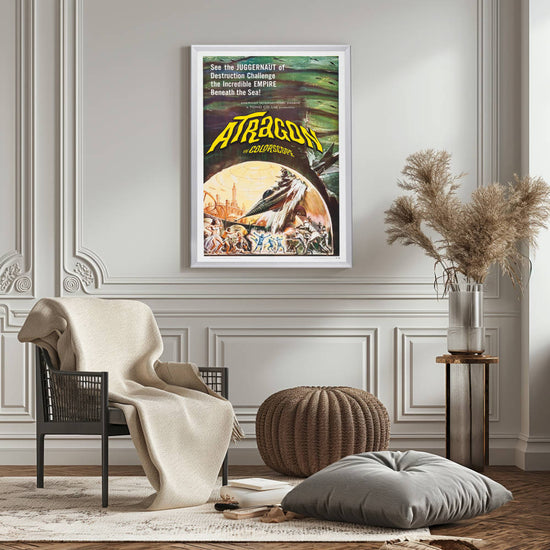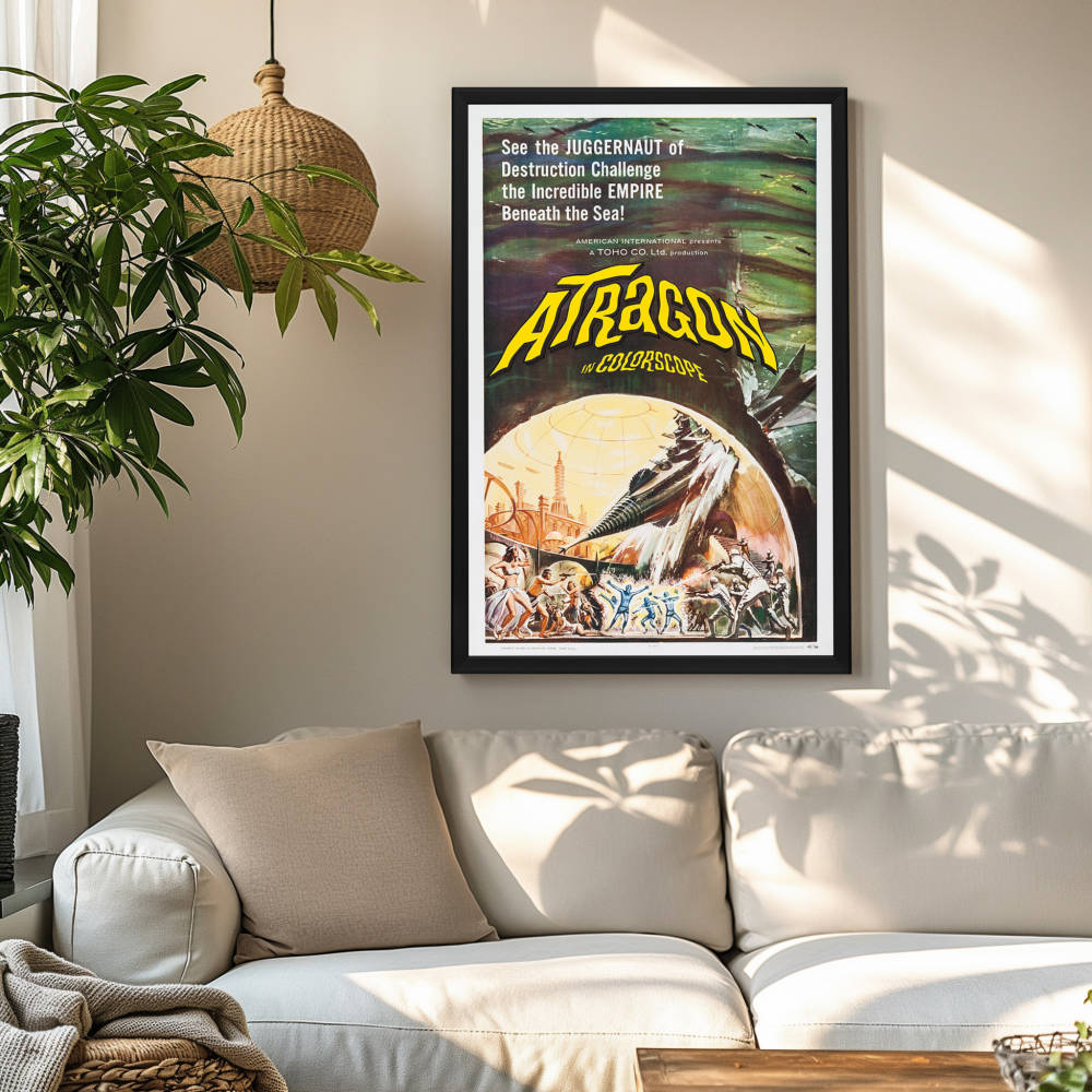 Relive the magic of "Atragon" with a superior quality framed reprint. Iconic imagery meets Snapezo's clear, anti-glare frame for a timeless display.