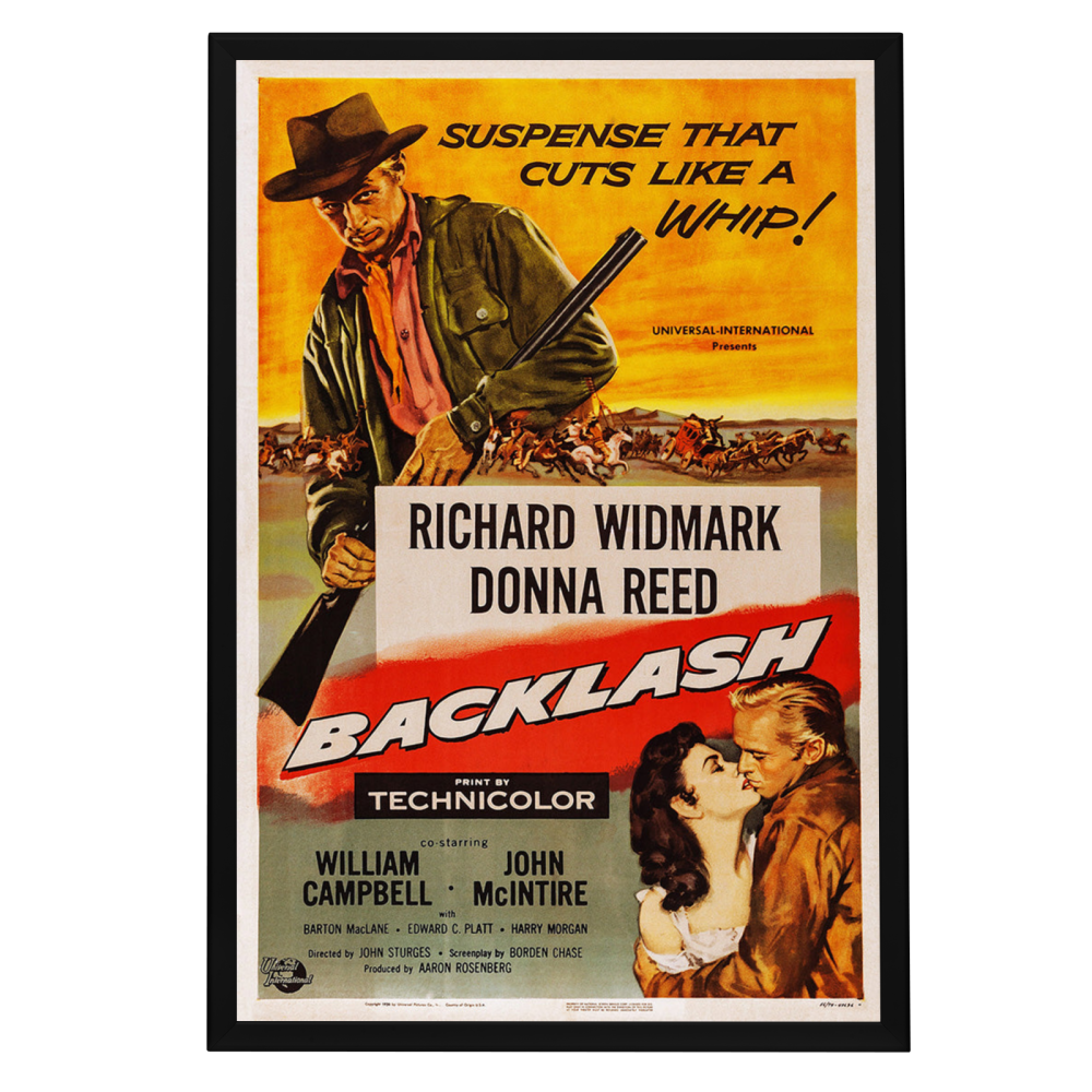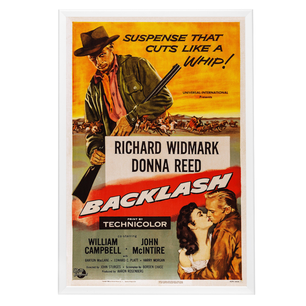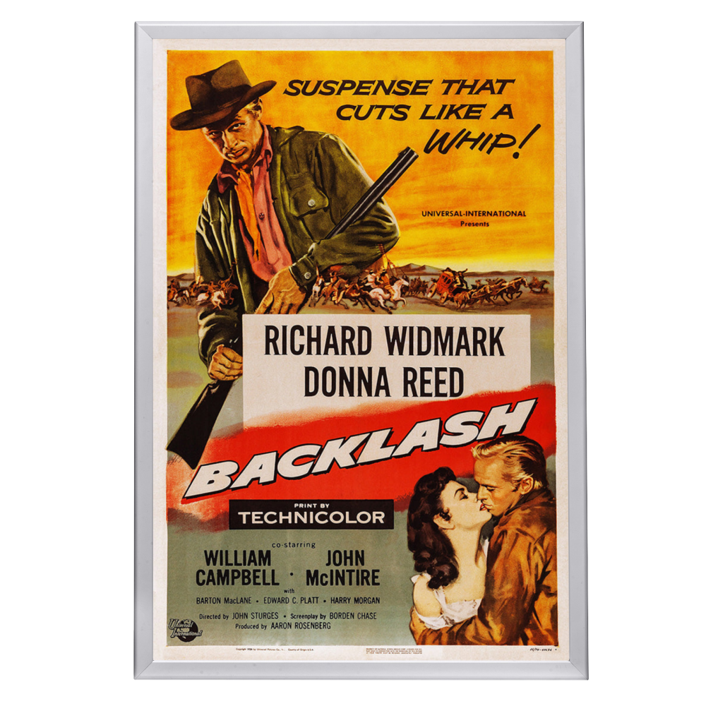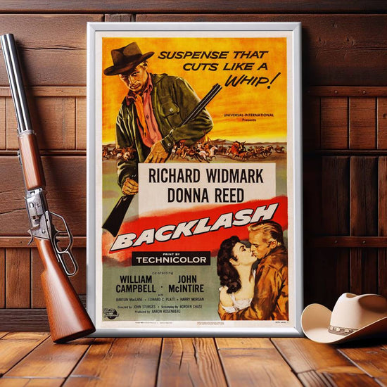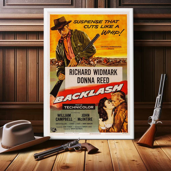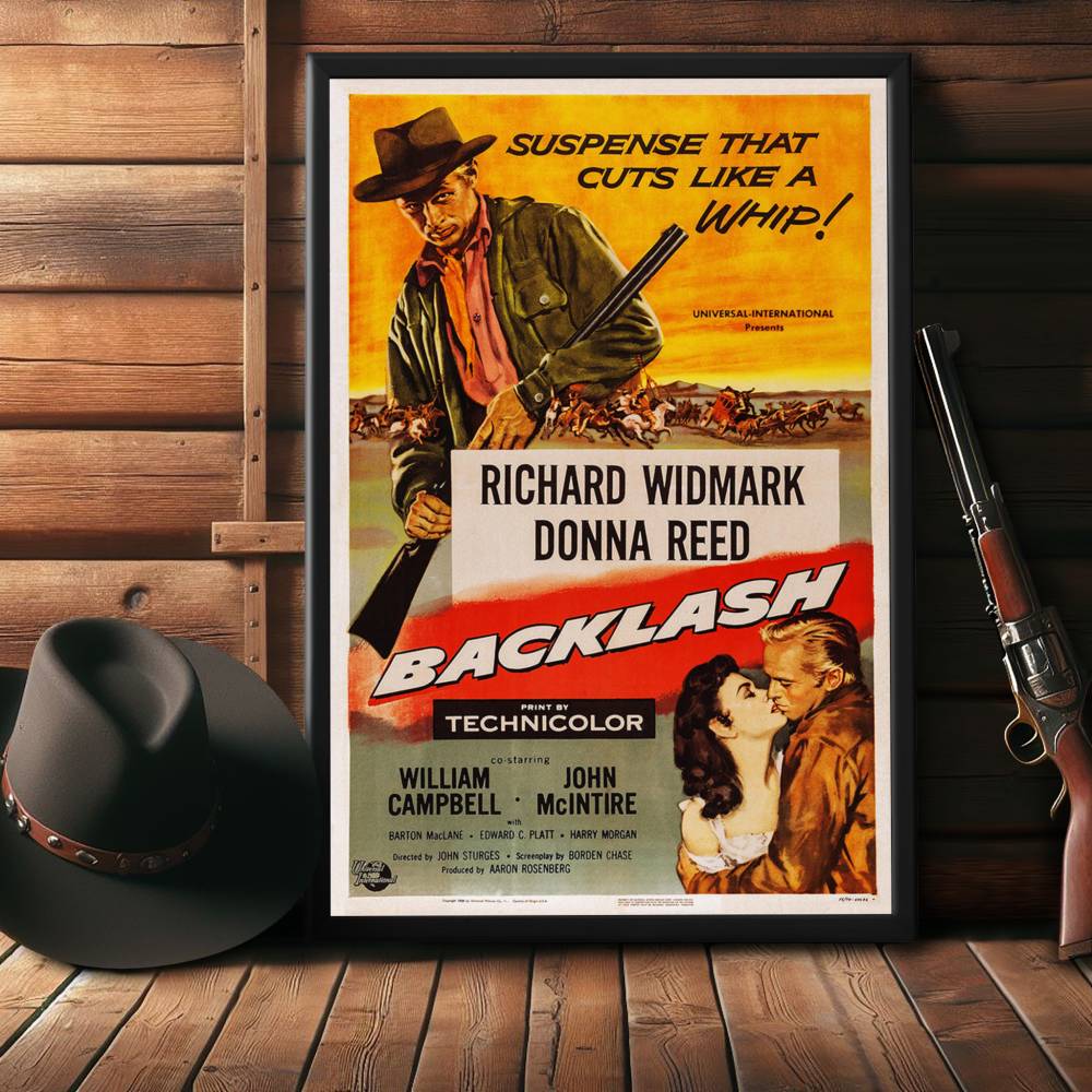The "Backlash" movie poster is a visual testament to the film's popularity and critical acclaim upon its release. Directed by John Sturges and starring renowned actors like Richard Widmark and Donna Reed, the poster brings to life the gripping storyline, set against the rugged backdrop of the wild west. With its bold typography and vibrant portrayal of key scenes, this poster is not just a piece of memorabilia but a slice of cinematic history.