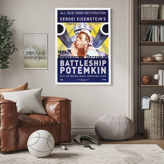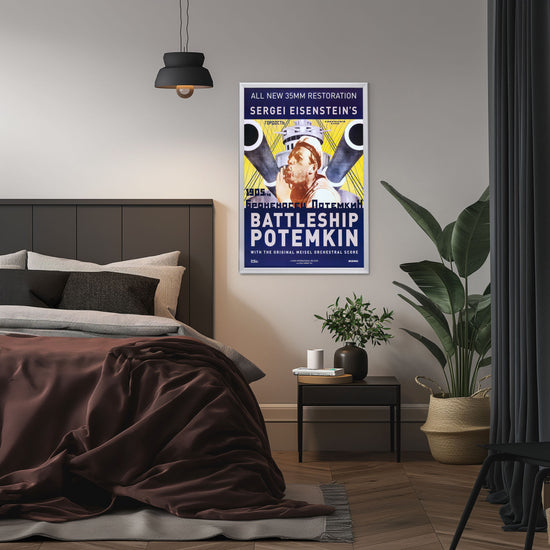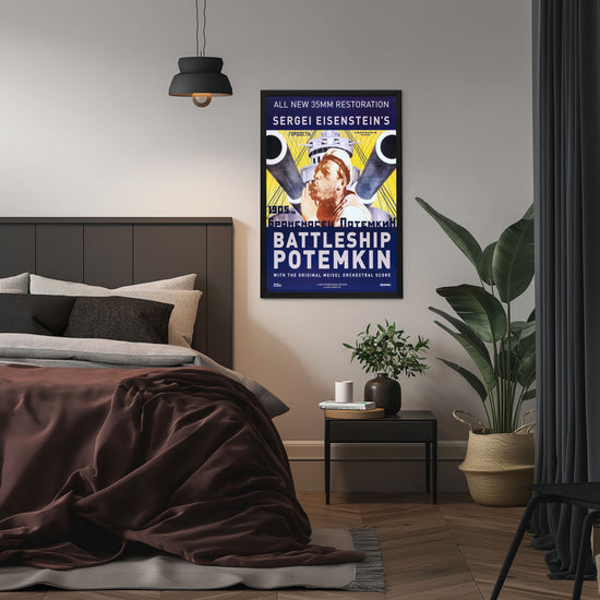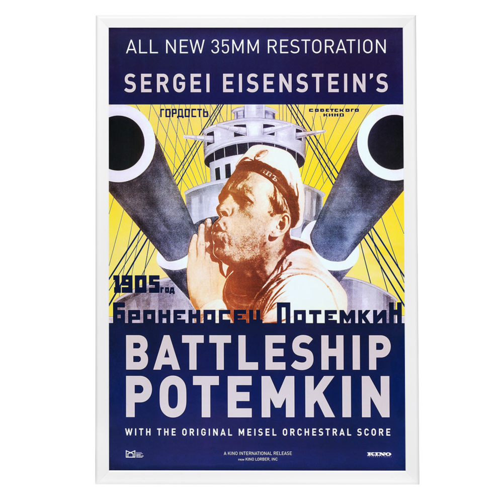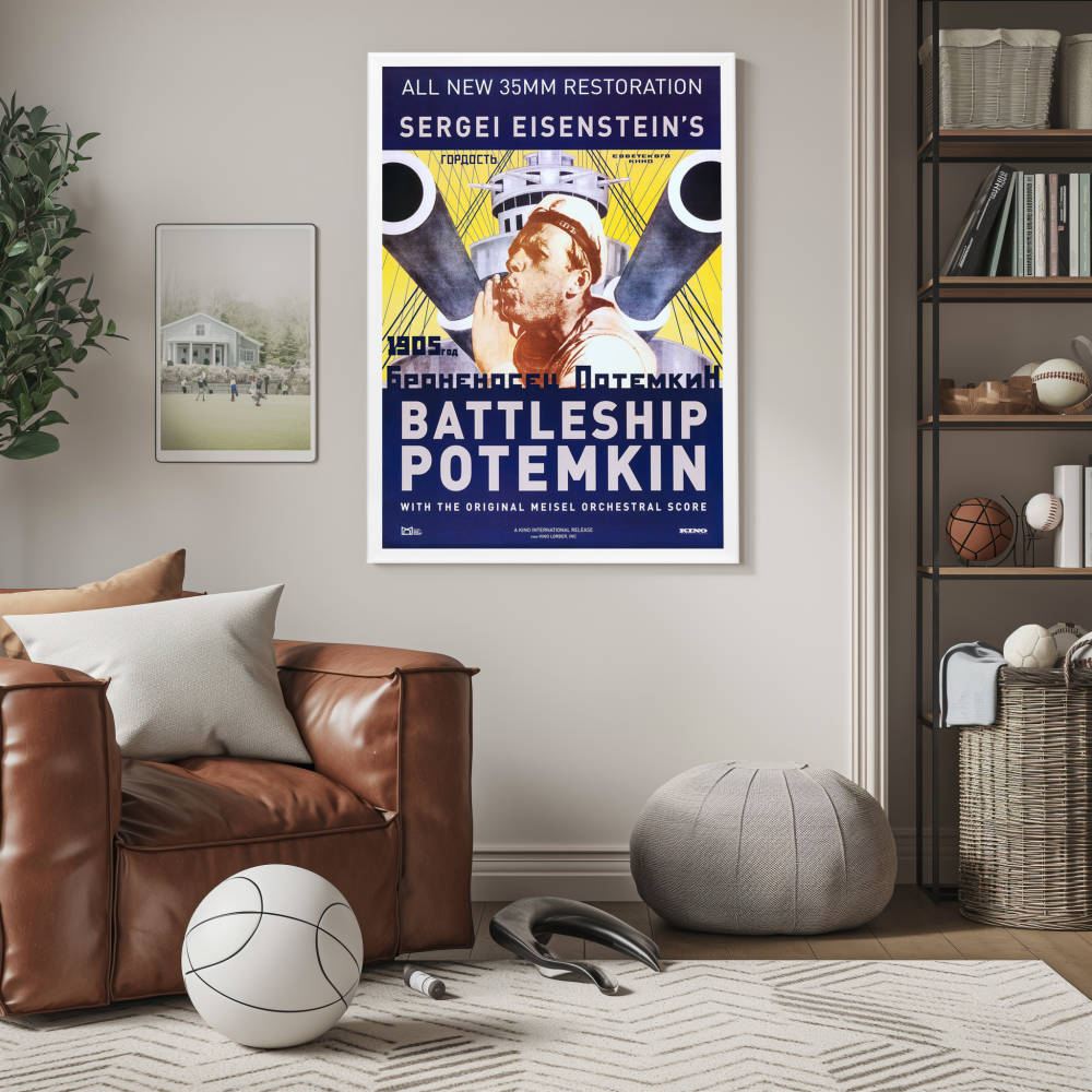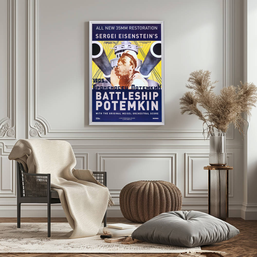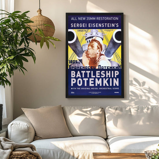 Immerse yourself in cinematic history with the exquisitely reproduced framed movie poster of "Battleship Potemkin," a 1925 Soviet silent film directed by Sergei Eisenstein. Revered as one of the greatest films of all time, this movie's propaganda poster has become iconic, symbolizing the power of visual storytelling and political art. The original work is lauded for its revolutionary montage editing technique, and this high-quality reprint reflects the intensity and drama that Eisenstein so masterfully conveyed.