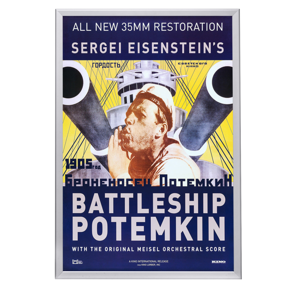 The visual appeal of the "Battleship Potemkin" poster is further enhanced by the Snapezo Professional Movie Poster Frame, which brings sophistication and durability to your collectible. This frame features a sleek, black anodized finish that complements the monochromatic theme of the poster, while the unique Snapezo snap design allows for easy poster changes without removing the frame from the wall. The clear, antiglare cover not only protects your poster from dust and damage but also ensures that the powerful imagery is viewable from all angles without any distracting reflections.