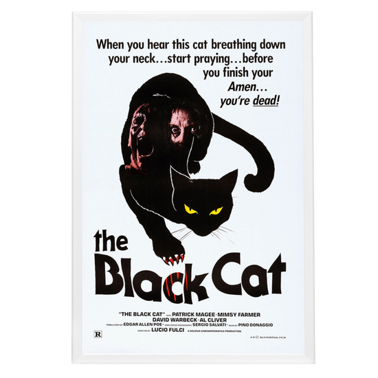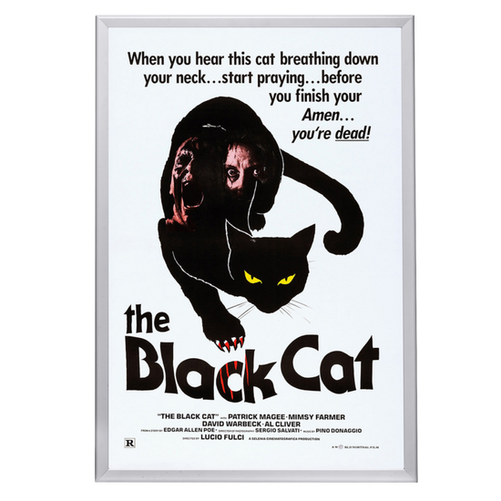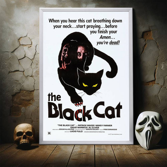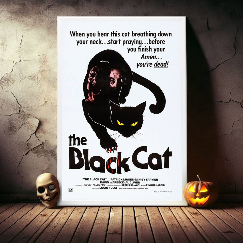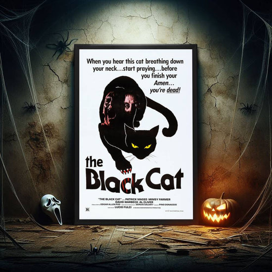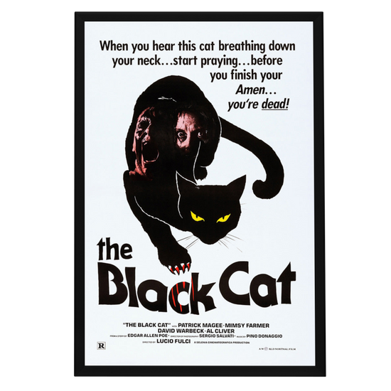 This high-quality reprint pays homage to the original artwork that captured the essence of Fulci's adaptation of Edgar Allan Poe's short story. It showcases the film's iconic imagery, with its chilling depiction of the sinister black cat and the ominous undertones that resonate with the film's dark narrative. The careful attention to detail ensures that every haunting hue and shadow is faithfully represented, giving fans and collectors a piece of horror history.
