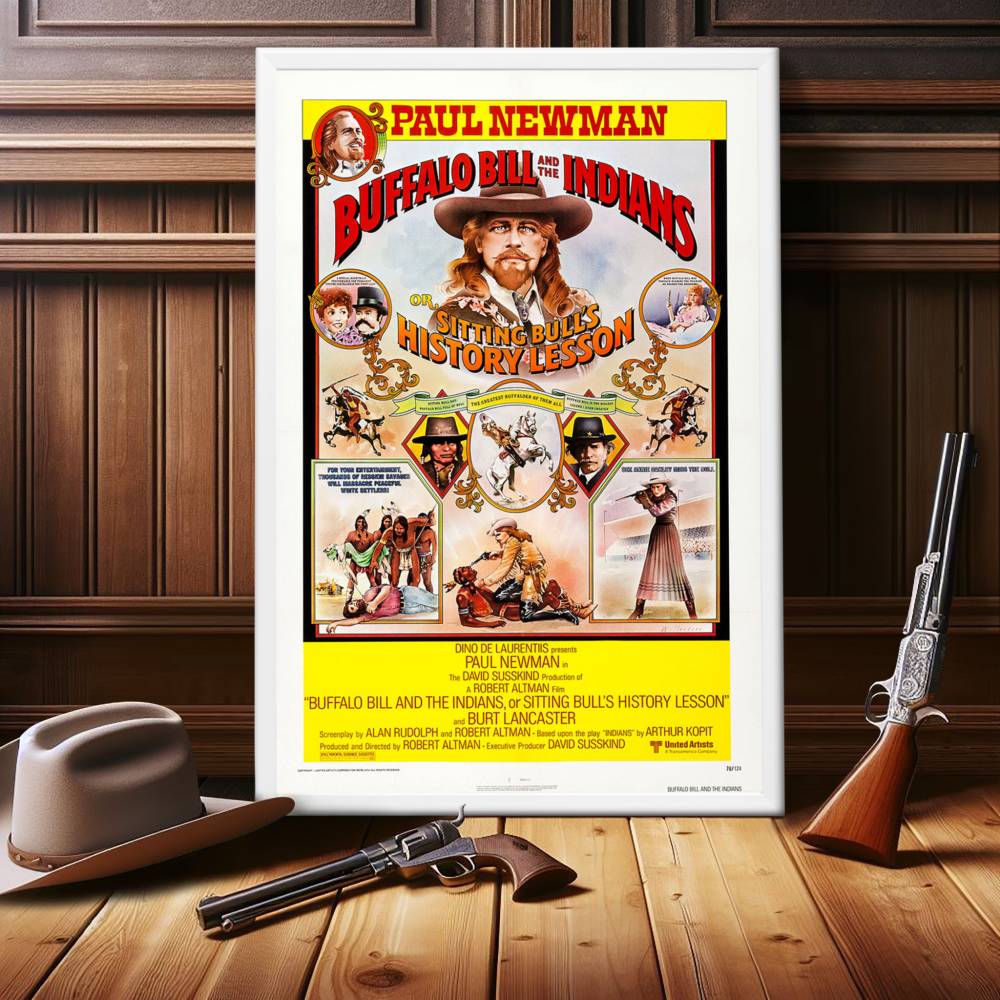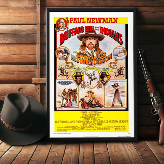 This particular poster, renowned for its vivid depiction of Paul Newman as the titular Buffalo Bill, captures the essence of the film's theme: the tension between reality and the myth-making of the American West. The artwork resonates with fans for its vintage charm and intricate details that pay homage to the film's exploration of the blurred lines between heroism and fabrication.