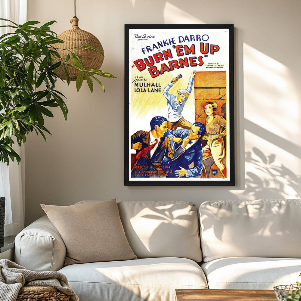 Bring the golden age of cinema directly into your home or office with the "Burn 'Em Up Barnes" framed movie poster, and let the Snapezo Professional Movie Poster Frame preserve the legacy of cinematic artistry and the relentless spirit of 1920s racing.