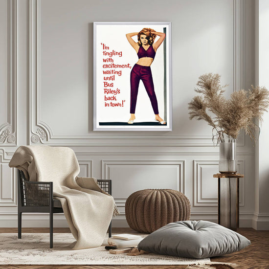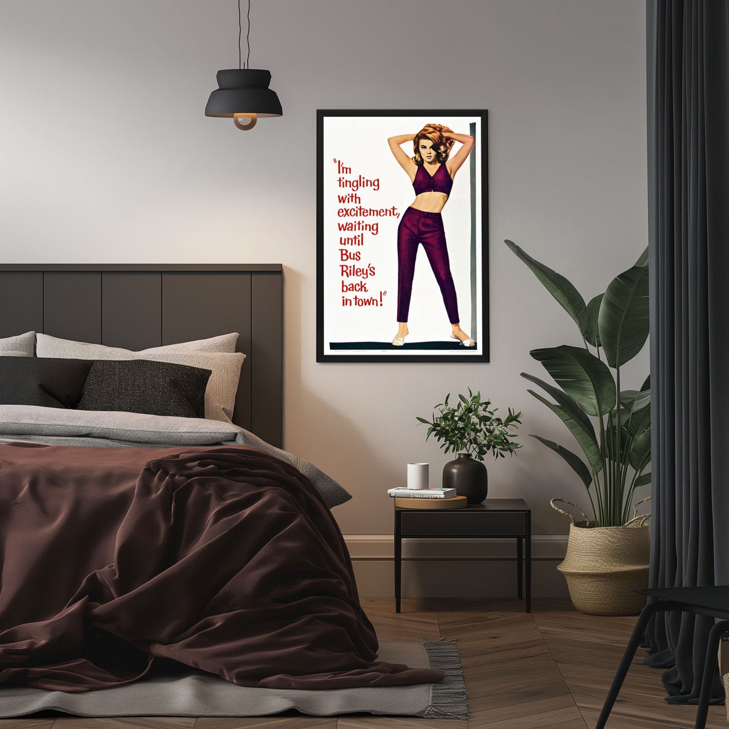Own a slice of cinematic history with the framed "Bus Riley's Back in Town" poster in a Snapezo frame, featuring high-quality reprint and anti-glare cover.