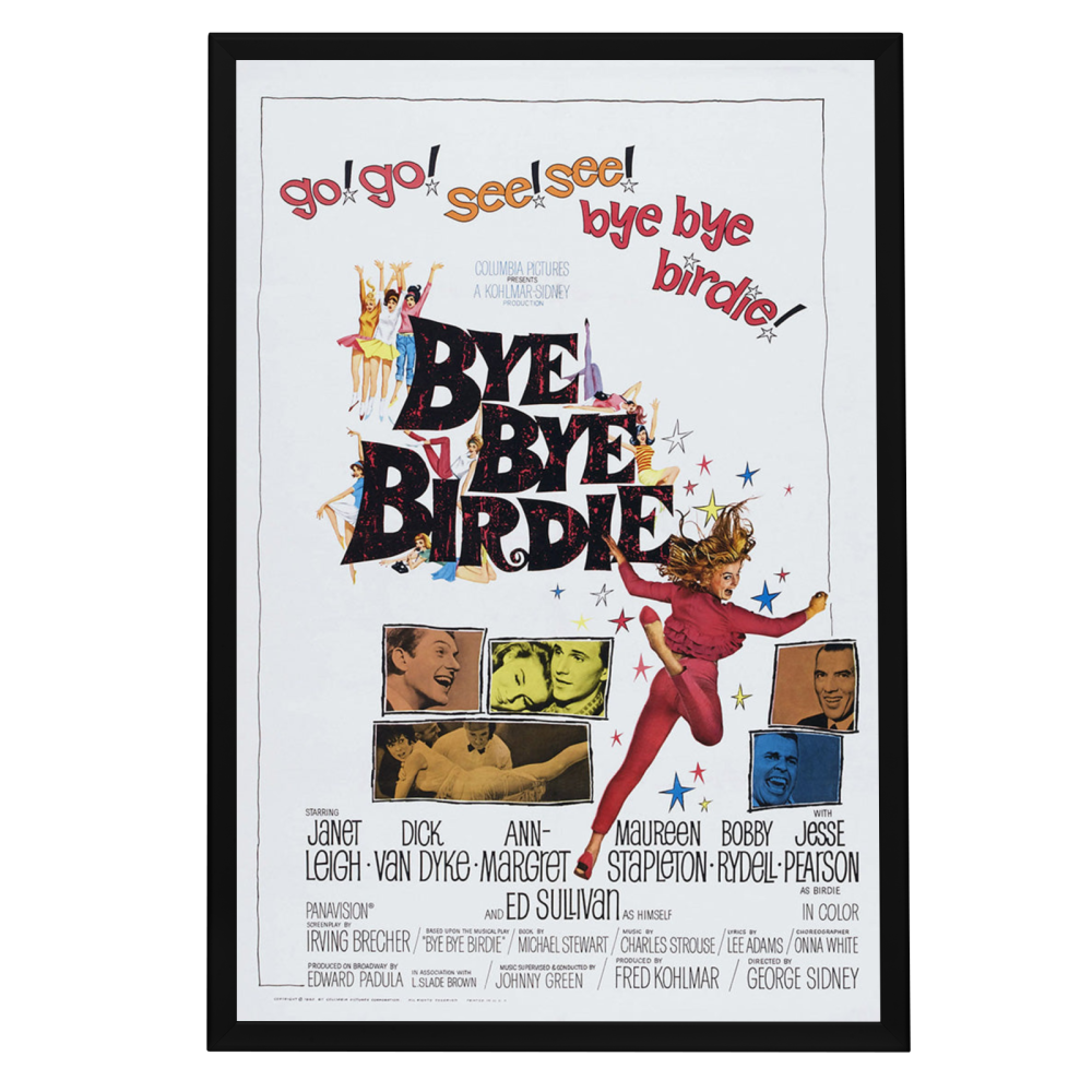 Own a piece of 60s nostalgia with a high-quality reprint of the "Bye Bye Birdie" movie poster, perfectly framed in clear, antiglare Snapezo for timeless appeal.