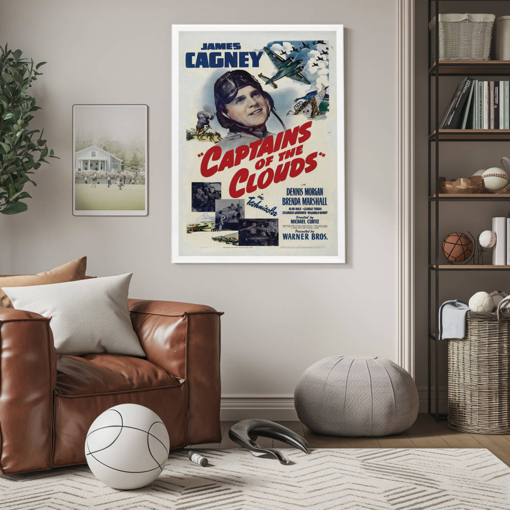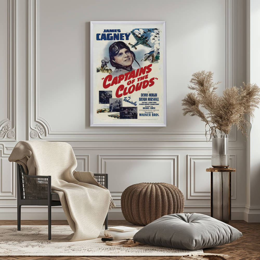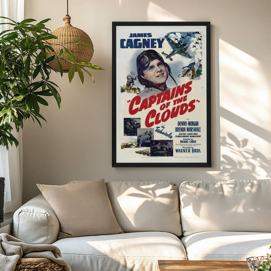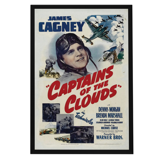 Whether you're a devotee of wartime epics, a lover of classic cinema, or a fan of Cagney's inimitable presence, this framed reprint of "Captains of the Clouds" promises to be a standout addition to your collection, invoking the bravery and adventure of the skies of yesteryear.