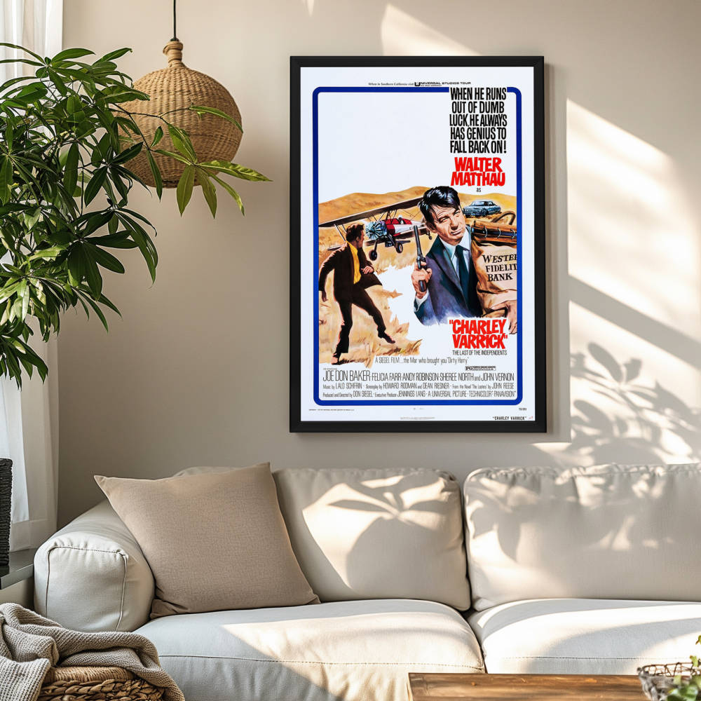 Own a piece of action history with the "Charley Varrick" framed movie poster. High-quality reprint in a Snapezo frame with clear, antiglare protection. Perfect for fans and collectors!