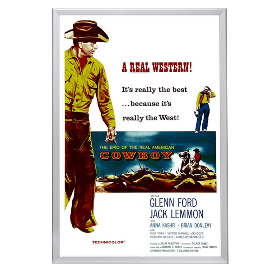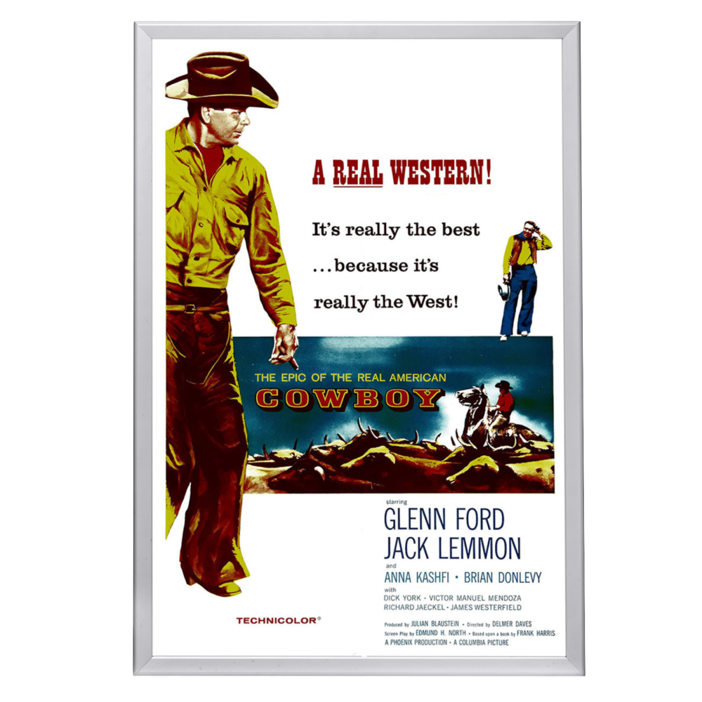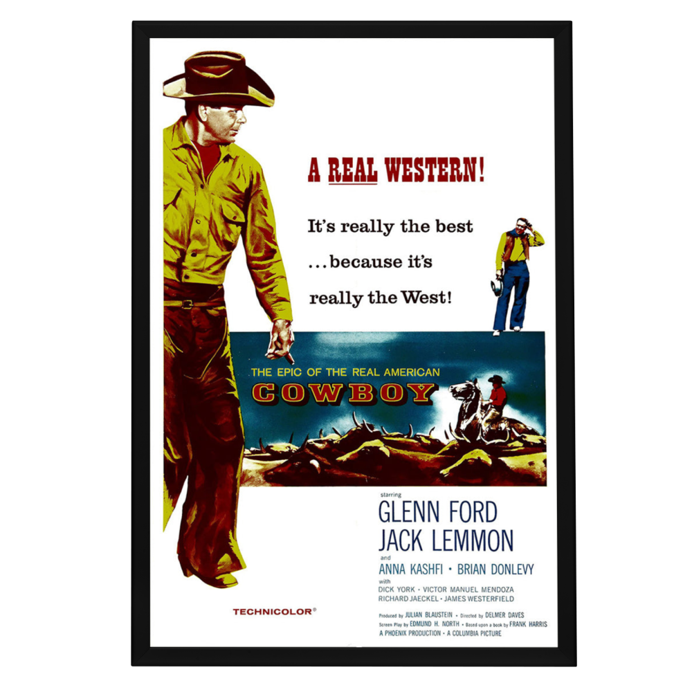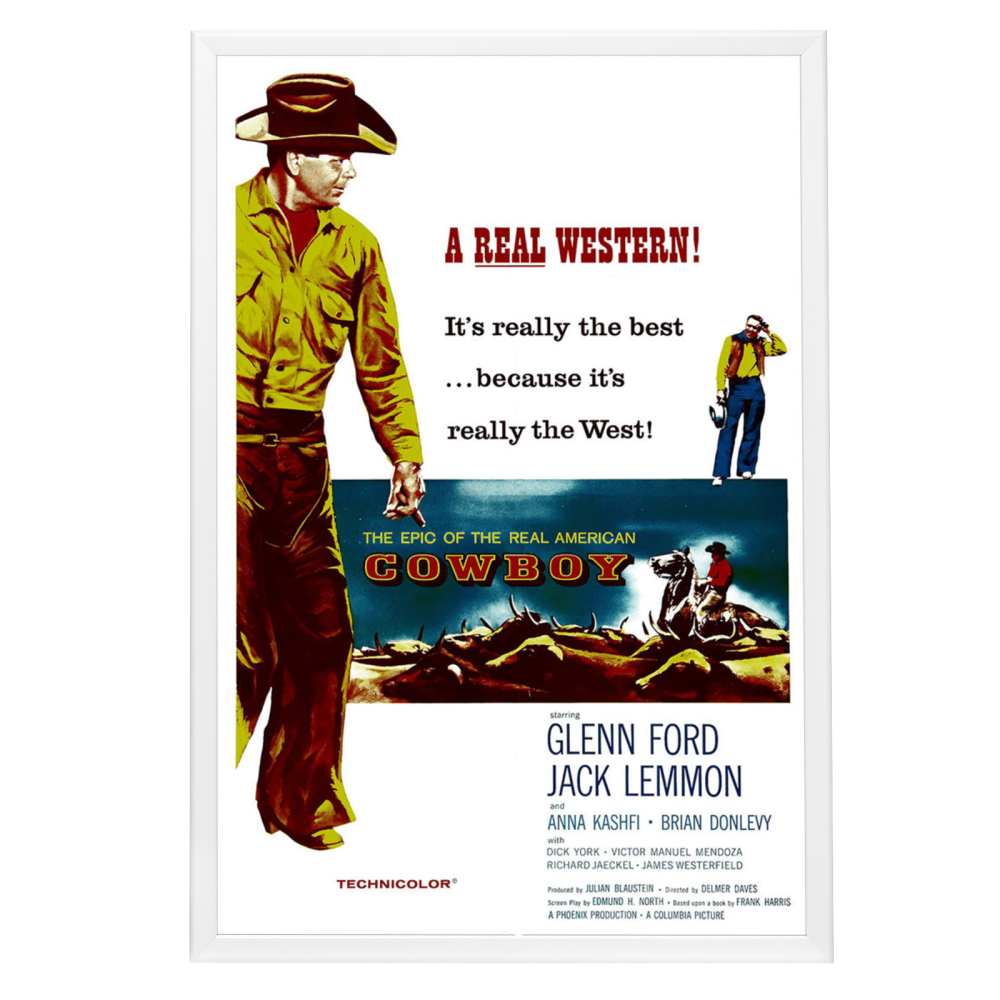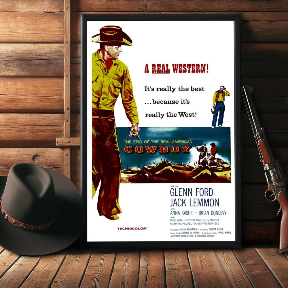 Own a piece of Western film history with this high-quality reprint of the "Cowboy" (1958) movie poster, elegantly showcased in a Snapezo antiglare frame.