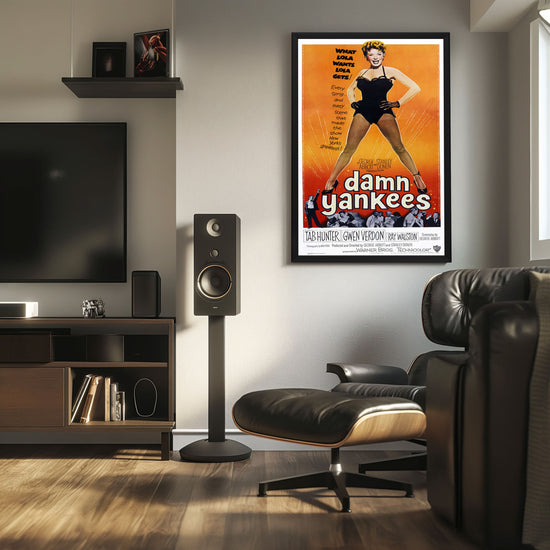 Immerse yourself in the nostalgic allure of classic Broadway musical charm with our framed "Damn Yankees" (1958) movie poster. This timeless piece captures the spirit of the Golden Age of musicals, beckoning you to relive the magic of the tale that danced its way into the hearts of audiences with a mix of baseball, devilish deals, and show-stopping numbers.