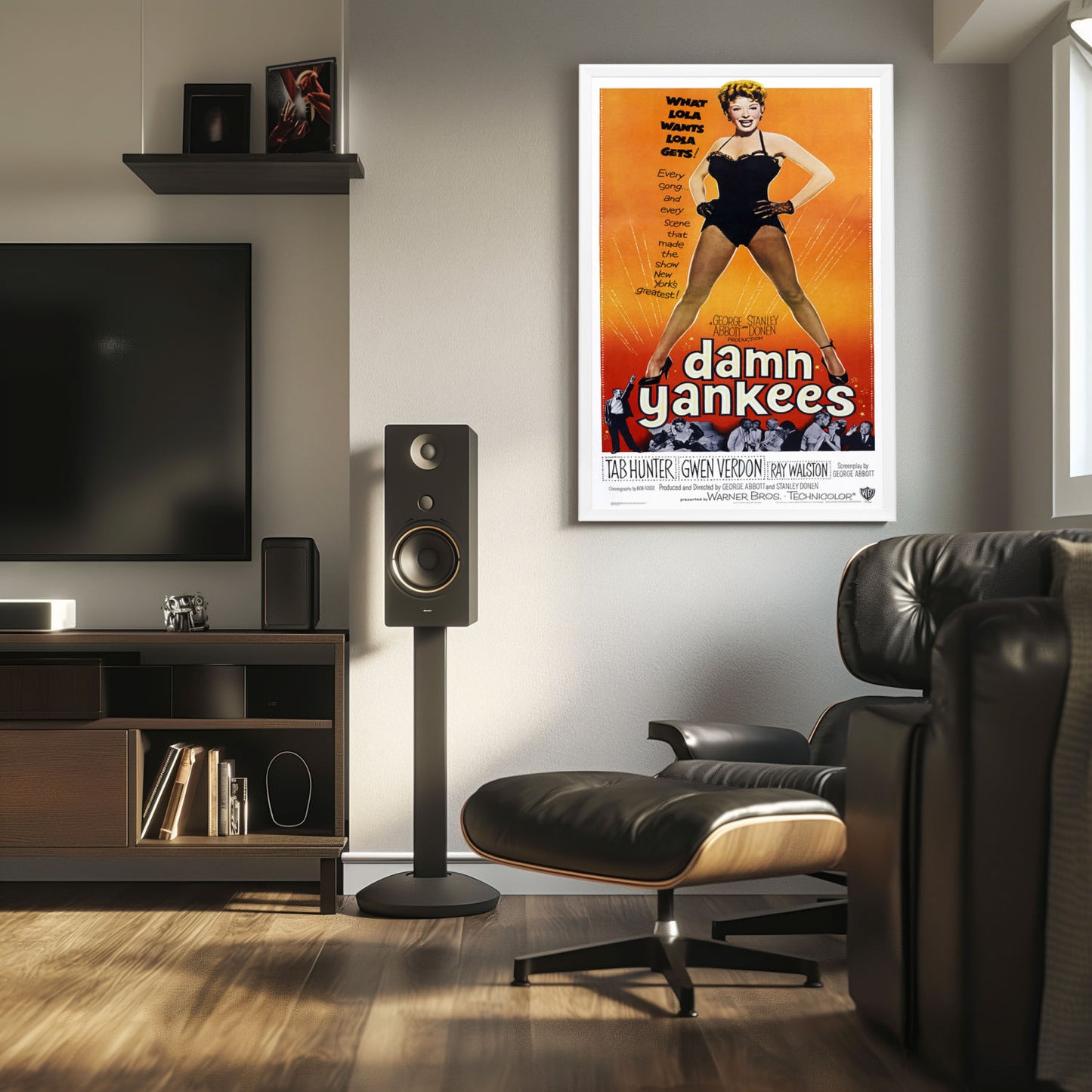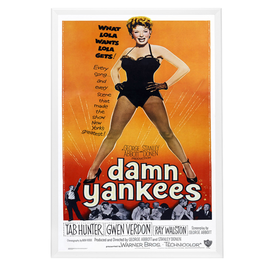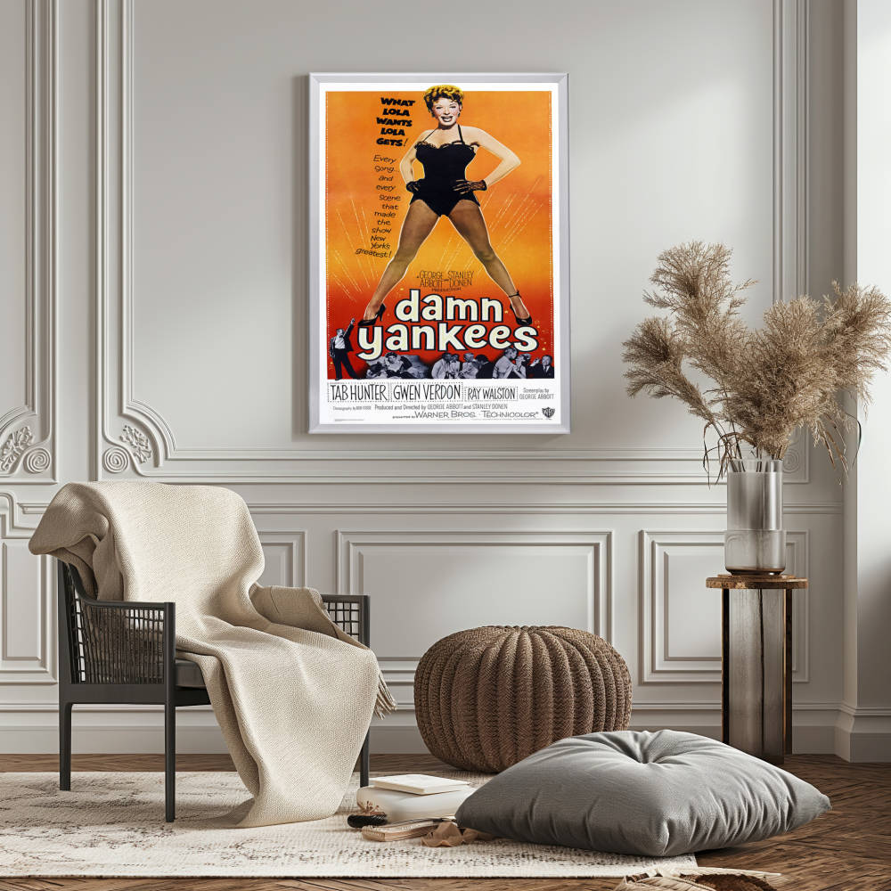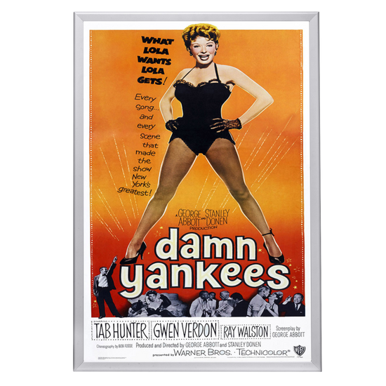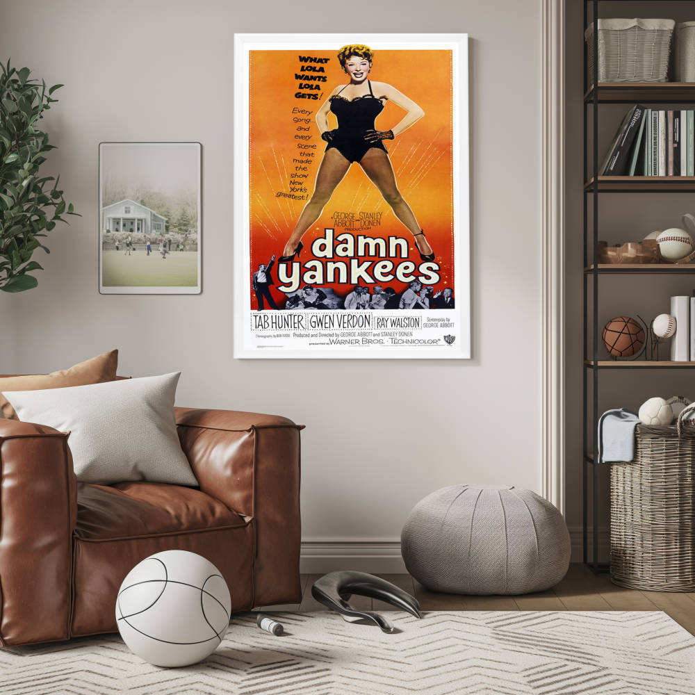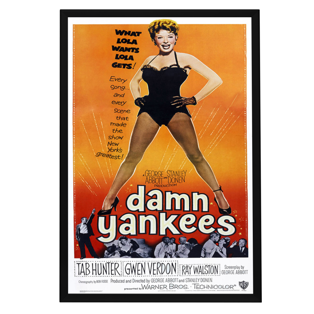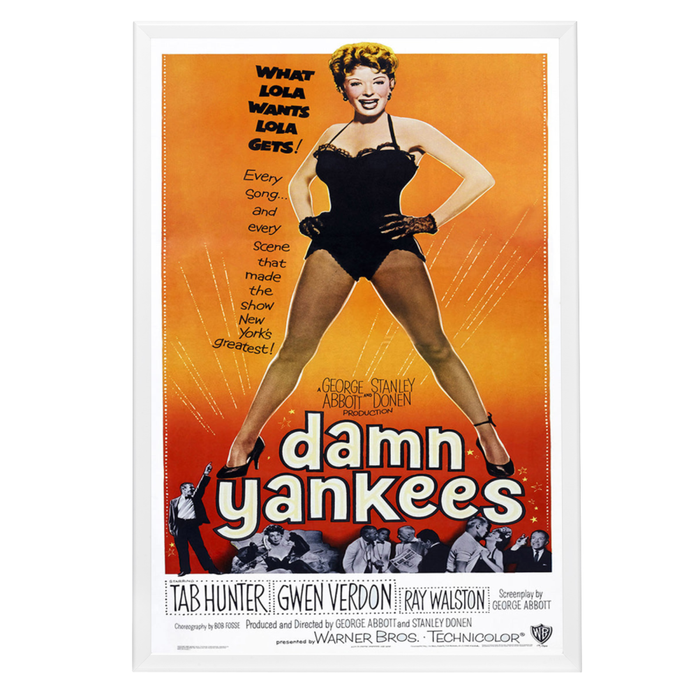 Capture the essence of Broadway with the framed "Damn Yankees" (1958) movie poster in a Snapezo Professional Frame. High-quality reprint with clear/antiglare covers.