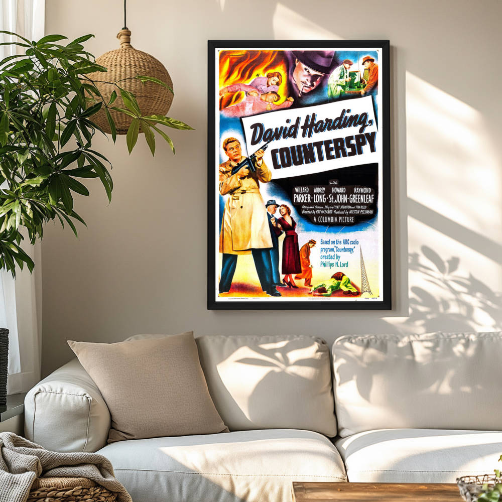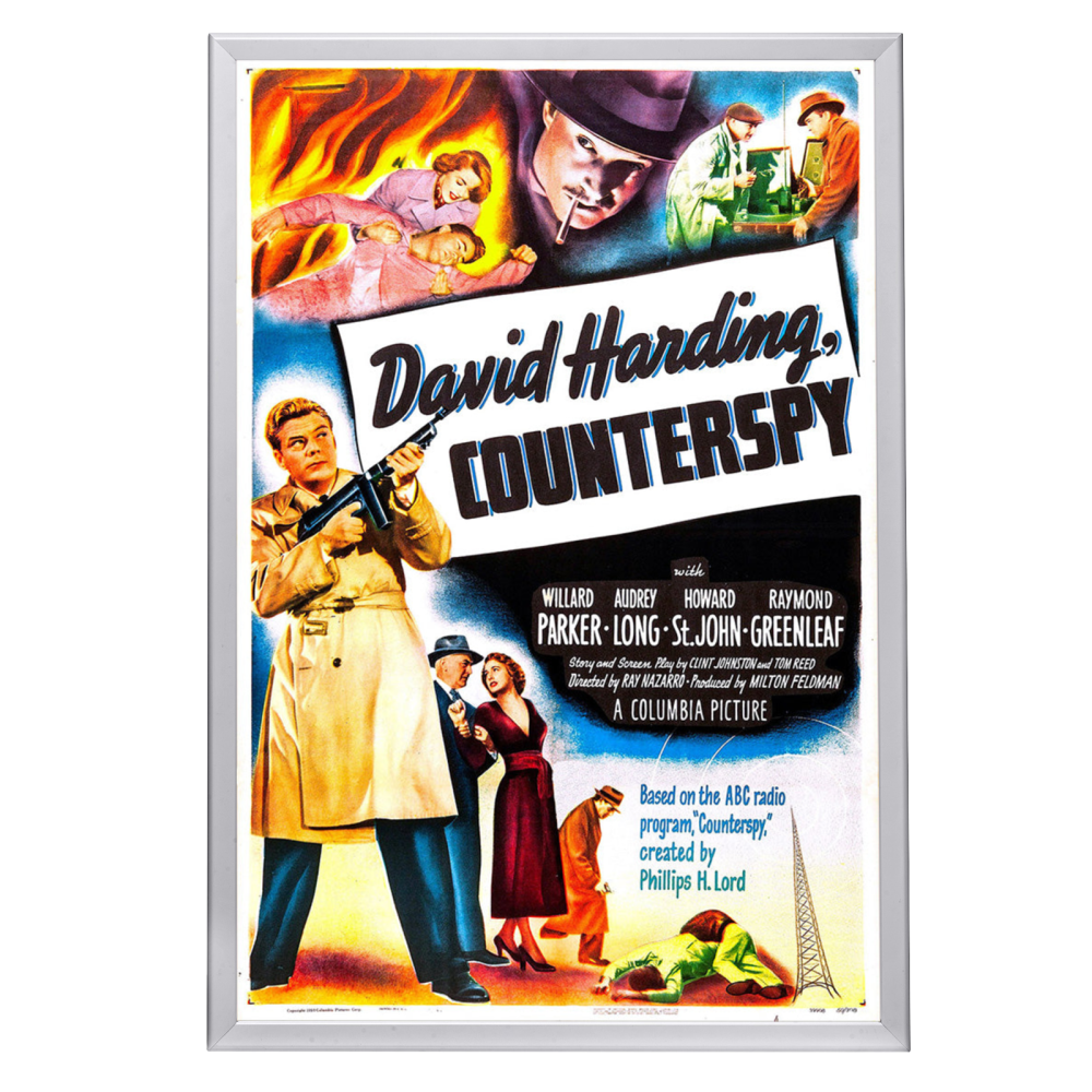 Own a piece of spy genre history with a high-quality reprint of the "David Harding, Counterspy" movie poster in a Snapezo frame, featuring clear, anti-glare covers.