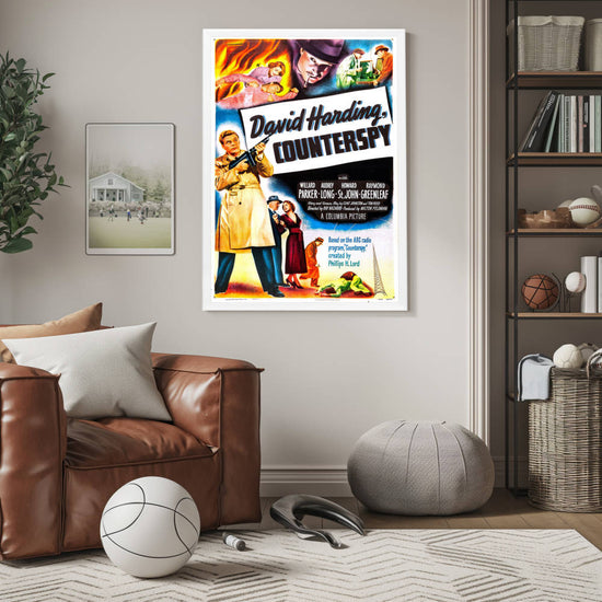 Revive the classic espionage intrigue of the 1950s with the framed "David Harding, Counterspy" movie poster, a high-quality reprint of the original promotional artwork that drew audiences to this thrilling cinematic experience. Celebrated for its suspenseful narrative and compelling performances, "David Harding, Counterspy" left an indelible mark on the spy genre with its captivating storyline that follows the titular character's daring escapades to thwart enemy spies during the height of the Cold War.