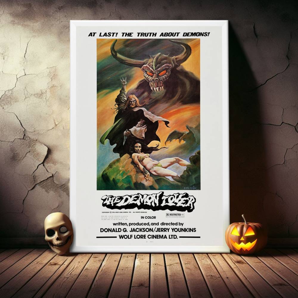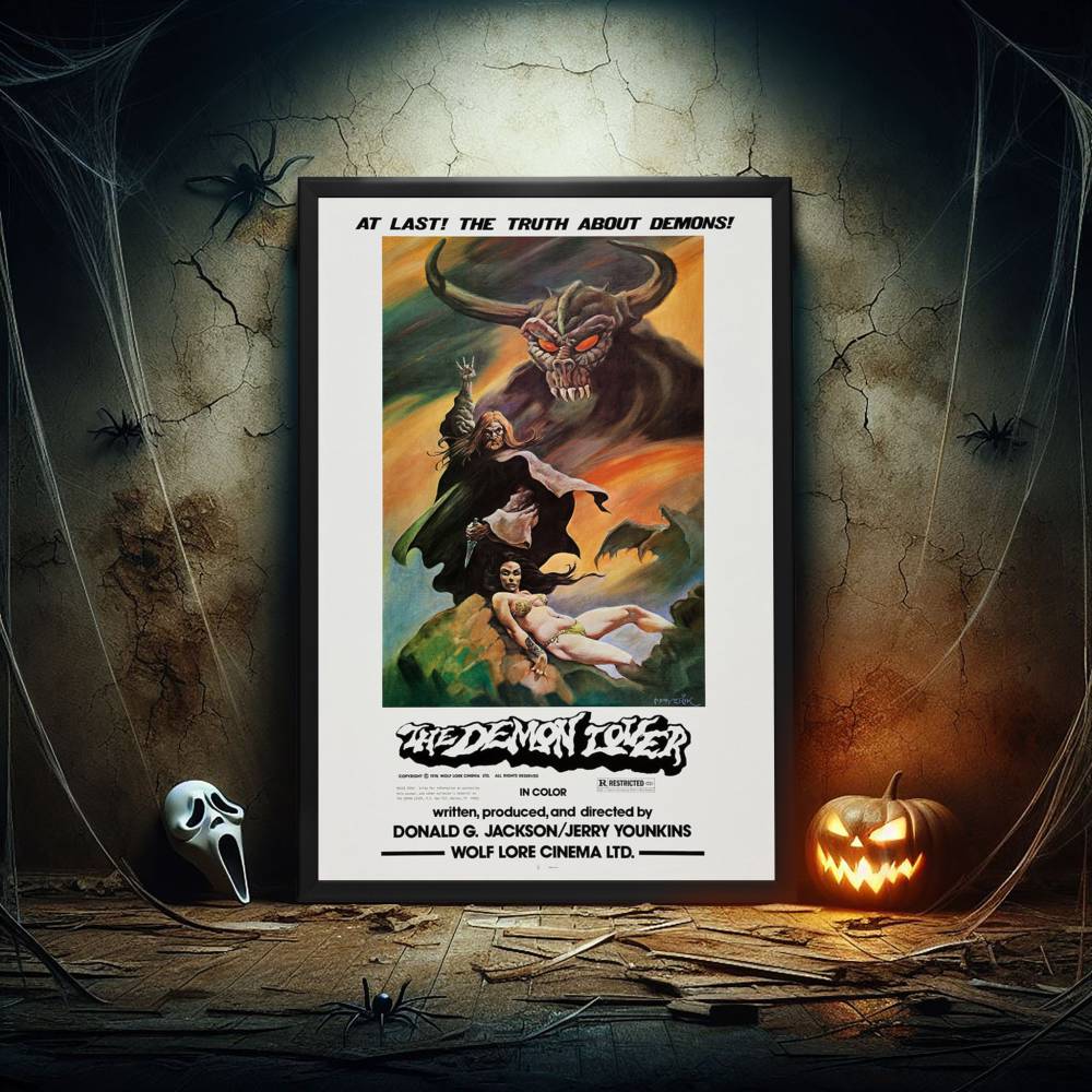 The "Demon Lover" poster features striking imagery that immediately draws the eye, touting vivid colors and eerie motifs that are emblematic of the late seventies' horror scene. Fans are instantly transported back to the movie's debut, with visuals that echo the film's gritty production and underground status. This is not a digital print; it's a carefully crafted reproduction that maintains the integrity and authentic details of the initial release, providing that sought-after vintage appeal.