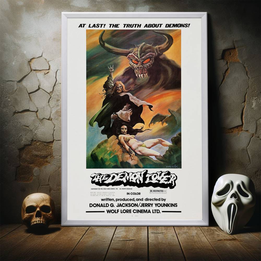 Relive the horror of 1977 with the "Demon Lover" framed poster in a Snapezo frame. High-quality reprint, clear antiglare cover. Perfect for horror fans!
