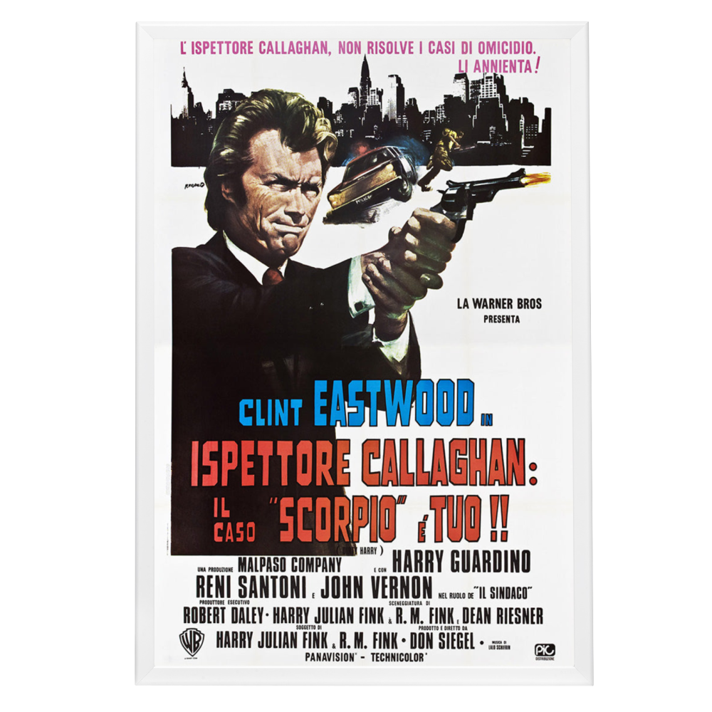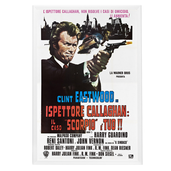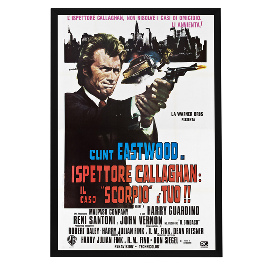 Capture the raw intensity and iconic status of Clint Eastwood with a museum-quality reprint of the "Dirty Harry" (1971) framed movie poster. This legendary cinematic piece hails from the film that cemented Eastwood's status as a Hollywood tough guy and gave rise to the quintessential anti-hero cop, Harry Callahan. The original poster, well-known for its gritty aesthetic and powerful imagery, is a collector's treasure, often recalled for its bold tagline, "You don't assign him to murder cases, you just turn him loose. "