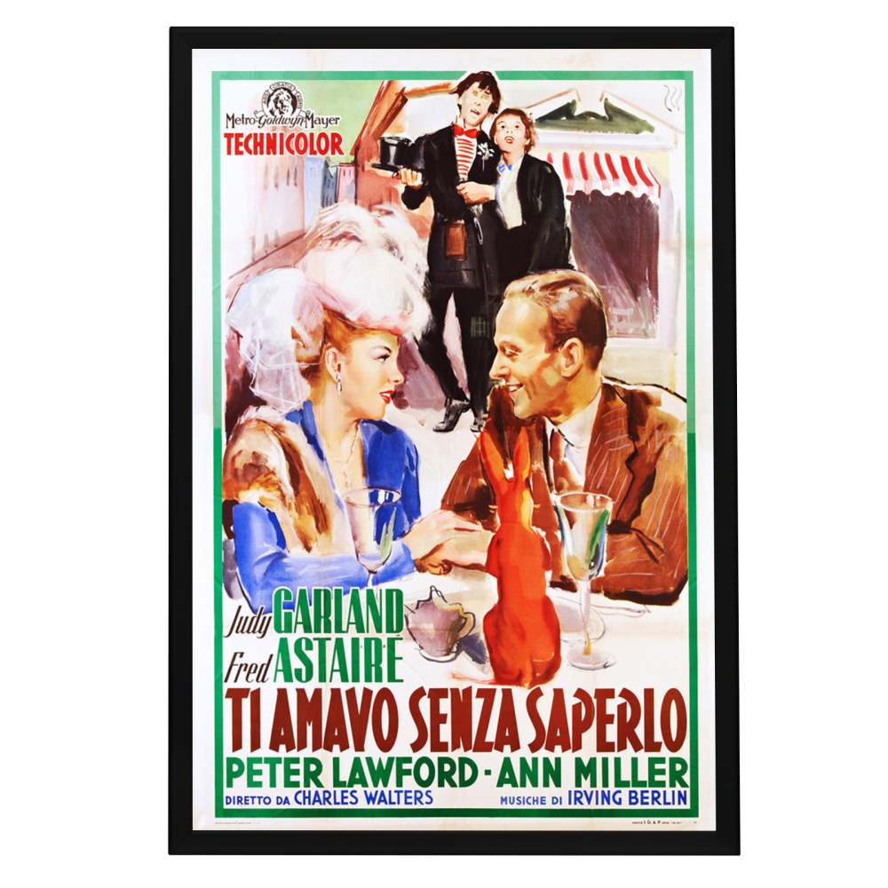 Bring the timeless elegance of classic Hollywood into your home with our framed "Easter Parade" movie poster. This high-quality reprint captures the essence of the 1948 musical hit, featuring the unmatched duo of Judy Garland and Fred Astaire. The film, renowned for its lavish production and memorable Irving Berlin tunes, secured its place in cinematic history with its vibrant portrayal of a bygone era of showbiz. Celebrated for the famous number "Steppin' Out with My Baby," the poster evokes the same sparkle and pizzazz that led the movie to win the 1949 Academy Award for Best Original Music Score.