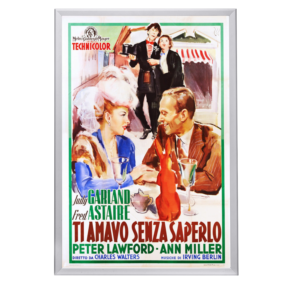Experience the charm of "Easter Parade" with a high-quality framed movie poster. Celebrate this 1948 classic featuring Garland & Astaire in a Snapezo frame.