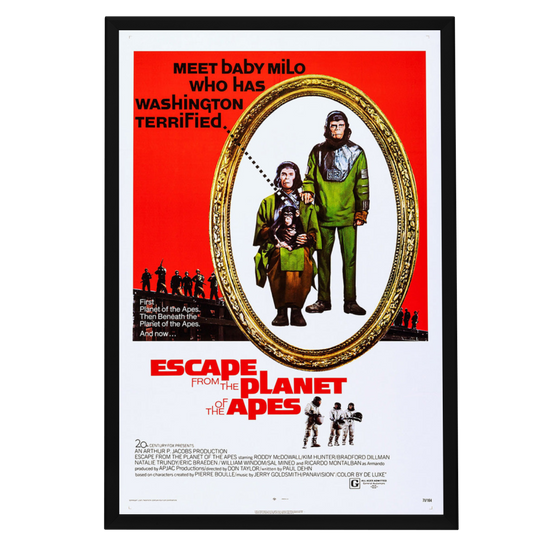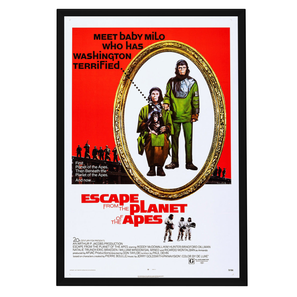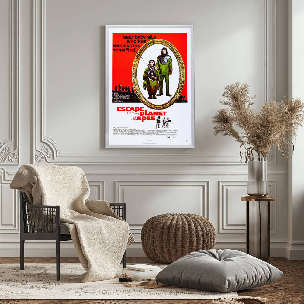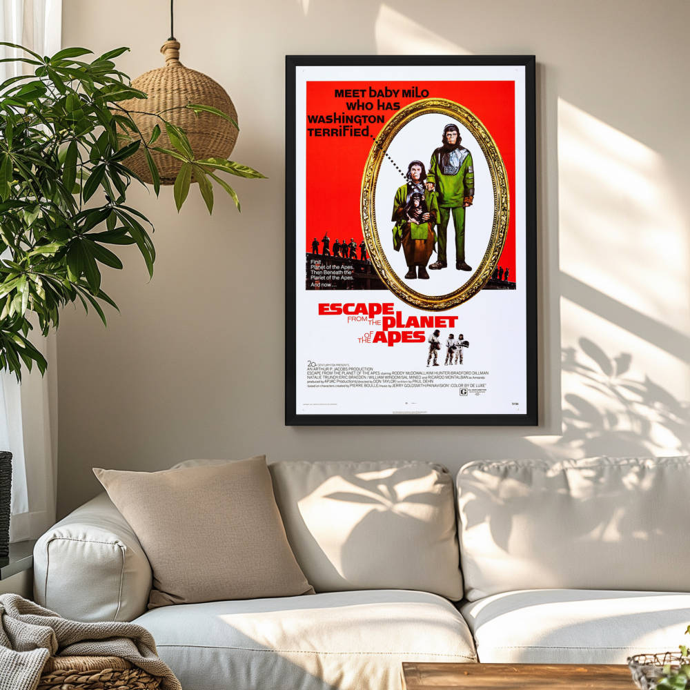 This framed "Escape From the Planet of the Apes" poster is perfect for movie enthusiasts and collectors who appreciate the blend of art and cinematic history. It's not just decor; it's a tribute to the film's influence and a conversation starter about the power of storytelling through film.