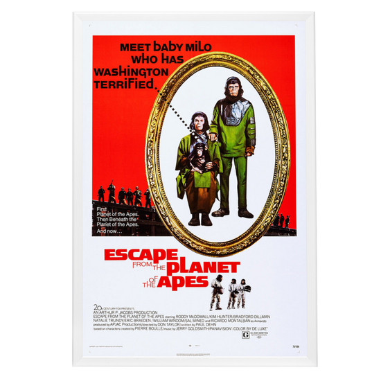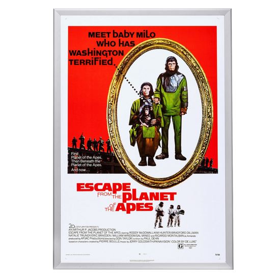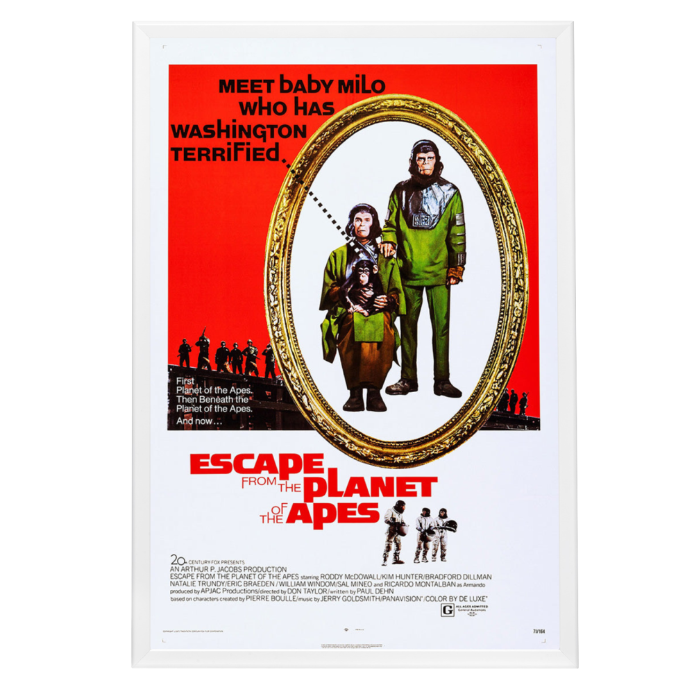 Own a slice of sci-fi history with "Escape From the Planet of the Apes" framed poster, featuring clear anti-glare Snapezo frame. Perfect for collectors!