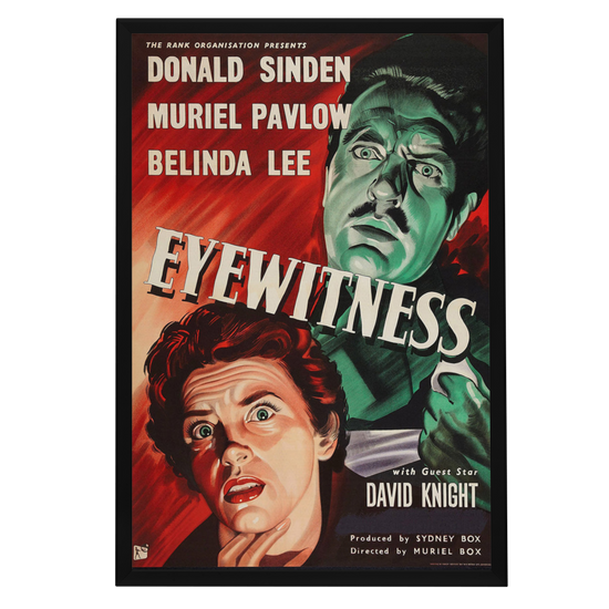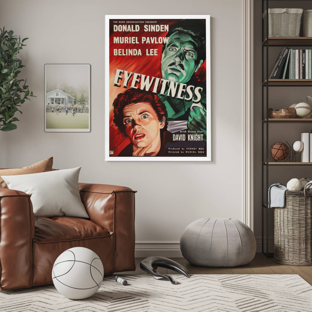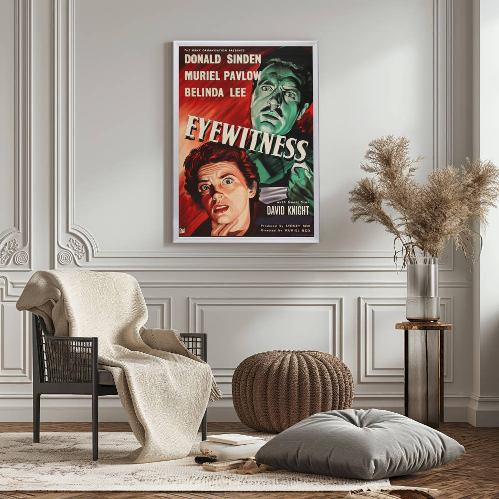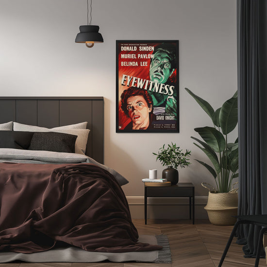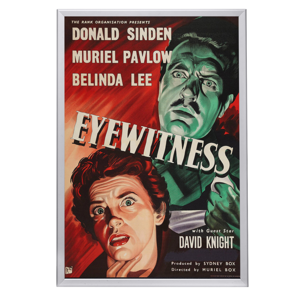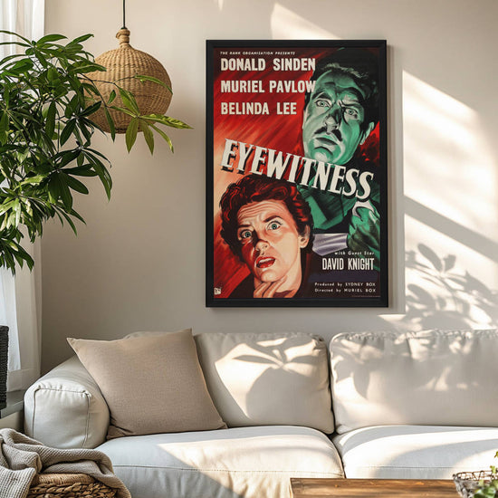 "Relive the suspense of 'Eyewitness' (1956) with a premium reprint framed in Snapezo's antiglare cover. High-quality, timeless film art for collectors. "