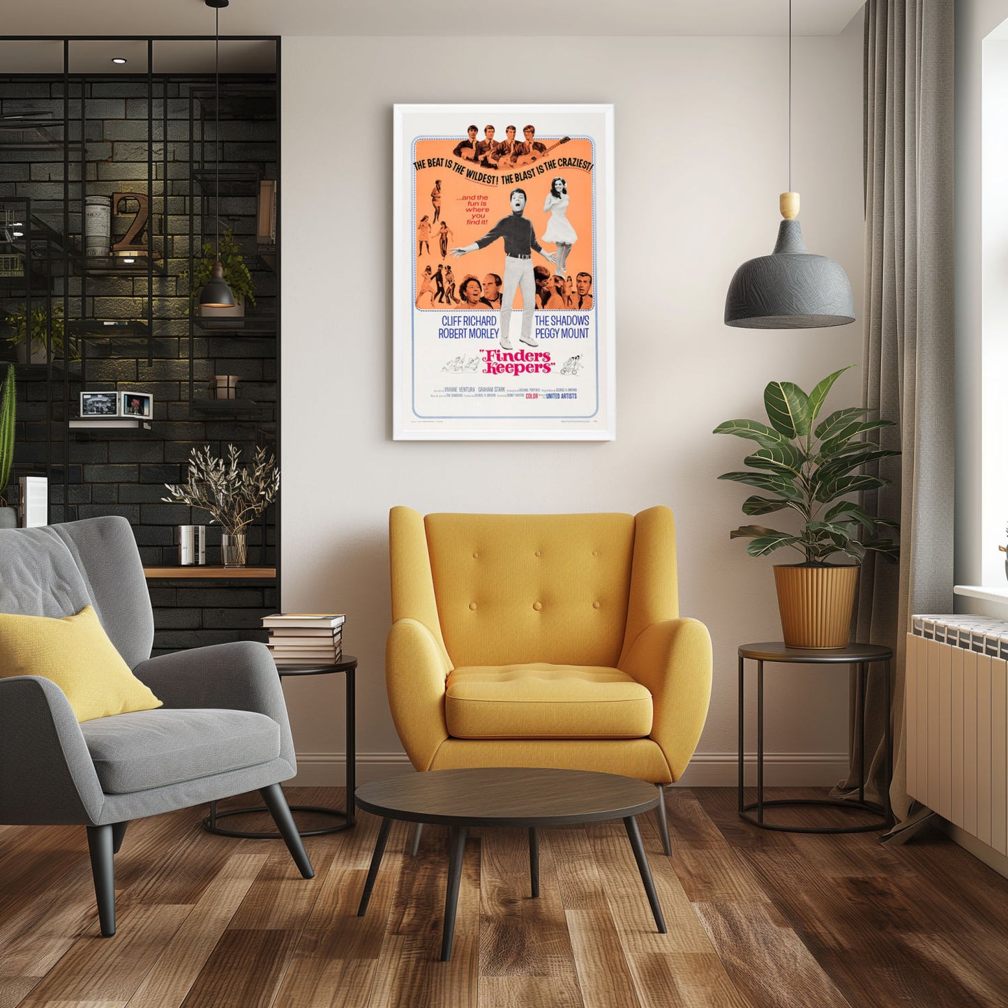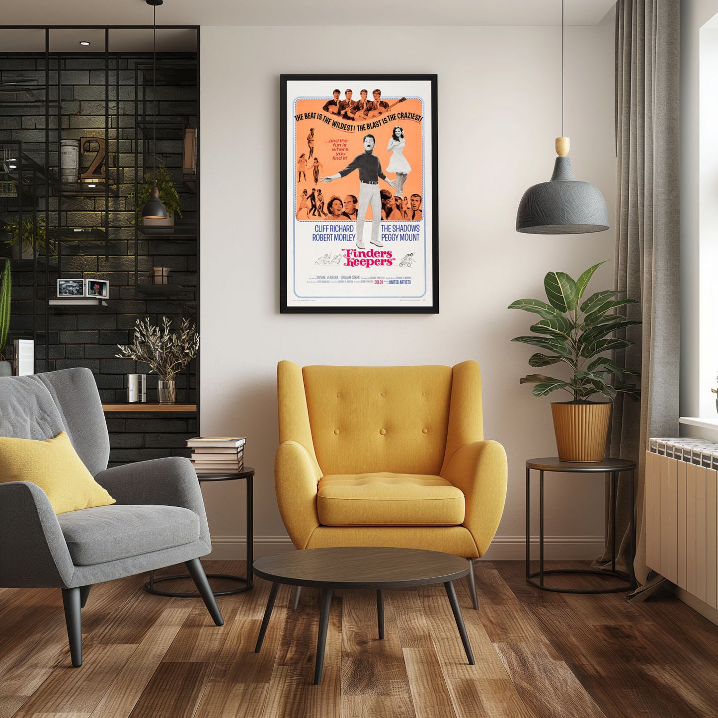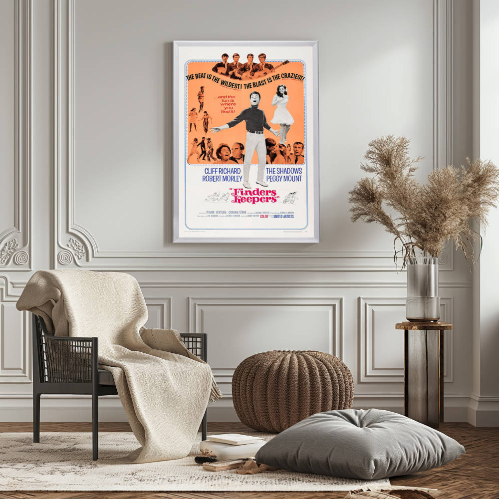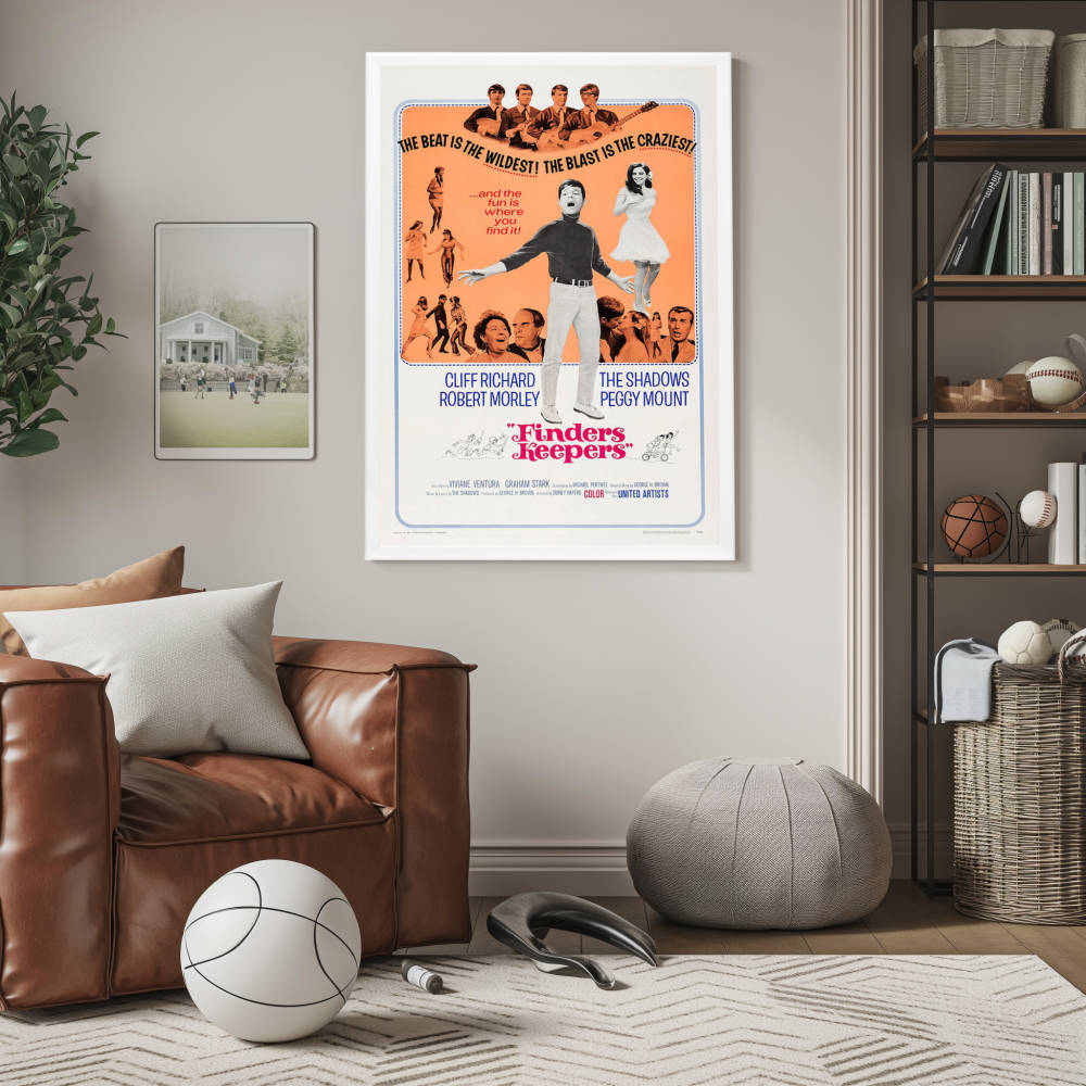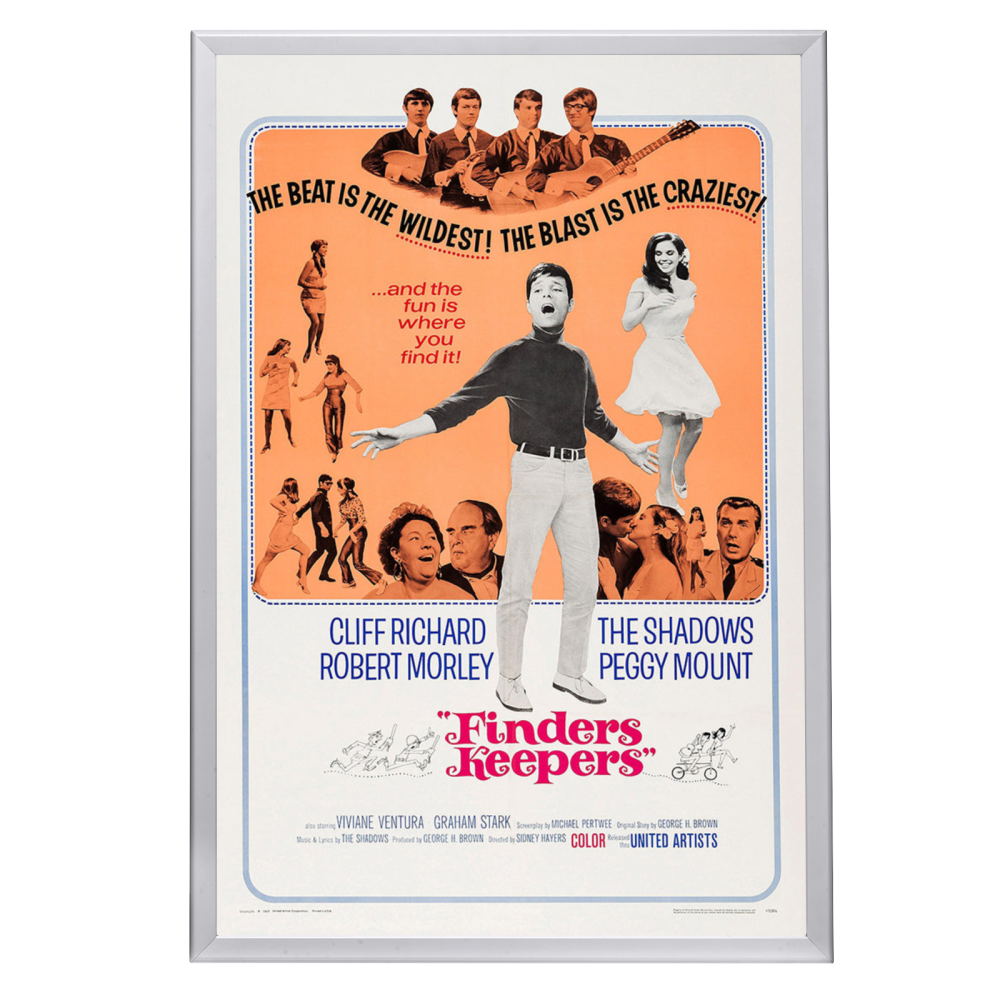 The visual appeal of the 'Finders Keepers' poster is undeniably captivating, featuring the iconic imagery of Cliff Richard and the gang embroiled in their joyous escapades, set against a backdrop of colorful adventure that is both lively and evocative of the film's spirited narrative. The lively poster art, rich in hues and retro appeal, is a conversation starter, ensuring the owner basks in the glory of owning a slice of cinematic history.