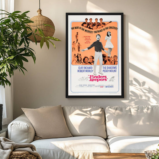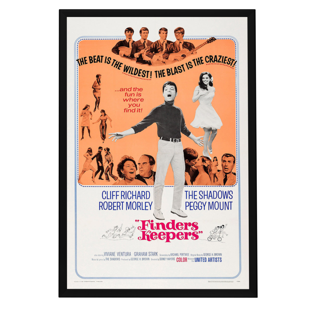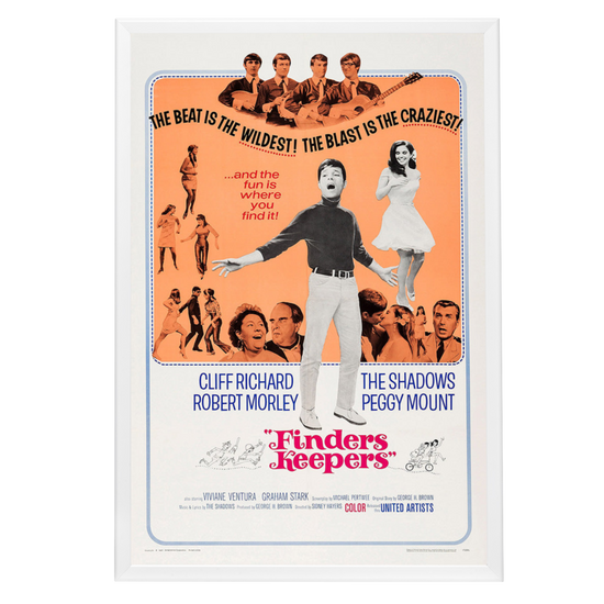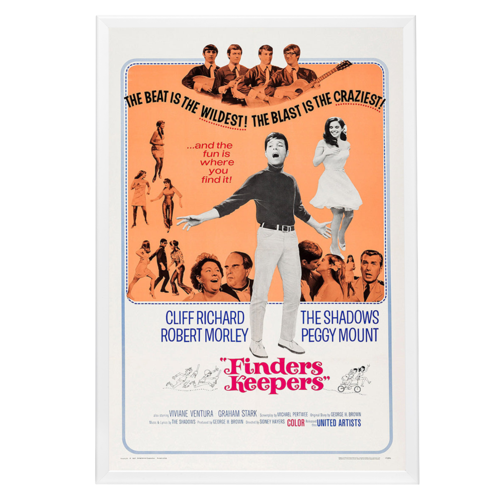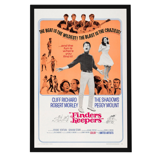 Immerse yourself in the rollicking nostalgia of the classic 1966 comedy 'Finders Keepers,' with this exquisite framed poster. Celebrating the film's enchanting blend of humor and musical energy, this poster captures the vibrant essence of the Cliff Richard starrer that won hearts with its blend of British charisma and Spanish flair. Not just an ordinary reproduction, each poster is a high-quality reprint that echoes the original's charm, meticulously crafted to bring the film's vintage allure into the modern day.