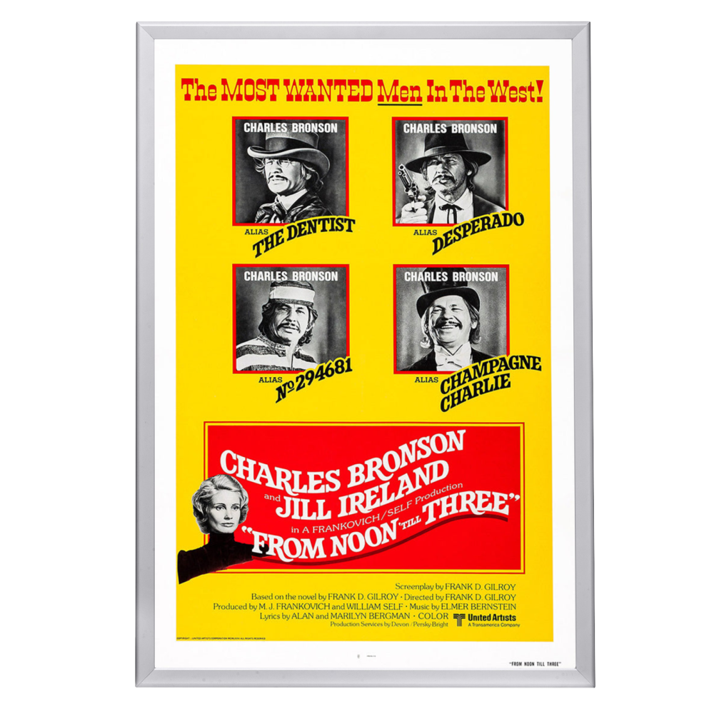 Experience the charm of a classic western romance through the iconic “From Noon Till Three” movie poster, encased in a stunning Snapezo Professional Movie Poster Frame. This 1976 film weaved an unexpected tale of love and legend, starring the magnetic Charles Bronson and the enchanting Jill Ireland. Directed by Frank D. Gilroy, the movie's unique twist on the western genre captivated audiences, and the poster itself became a symbol of the film's originality and Bronson's rugged yet vulnerable cowboy persona.