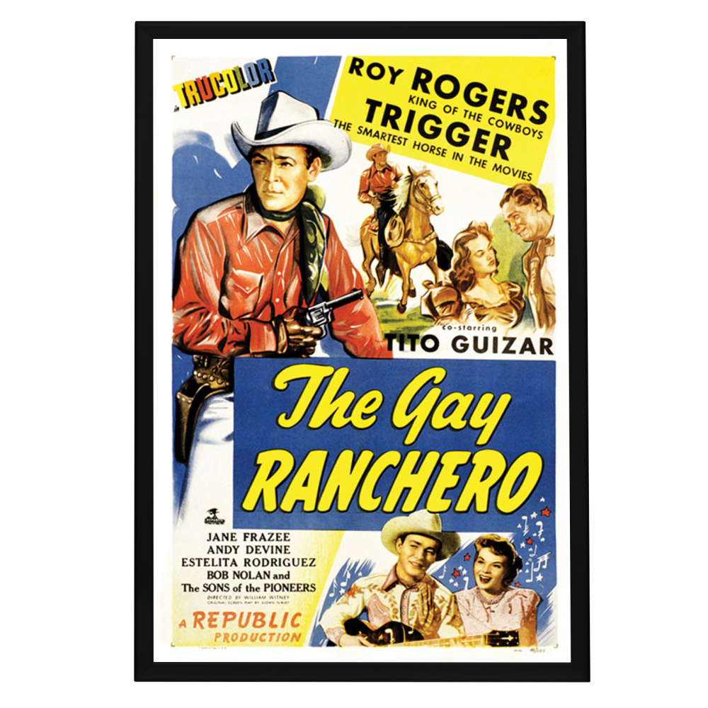 The fusion of the "Gay Ranchero" poster with the Snapezo frame creates a sophisticated piece of wall art that transcends time. Not only does it make a perfect gift for Western aficionados, but it also serves as an eye-catching piece for movie-themed decor, adding a touch of vintage Hollywood to any setting.