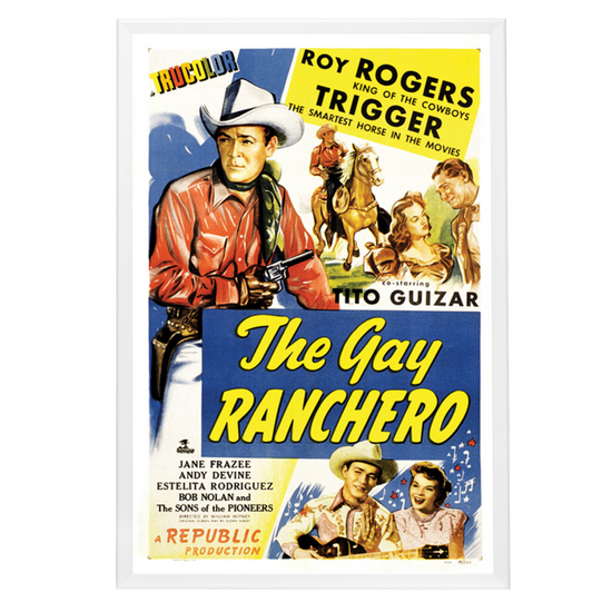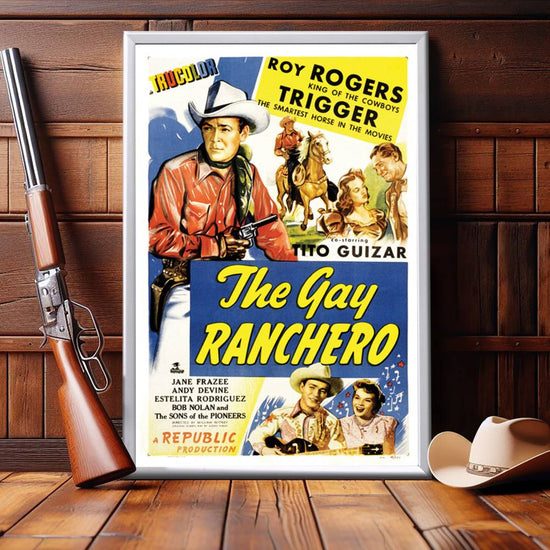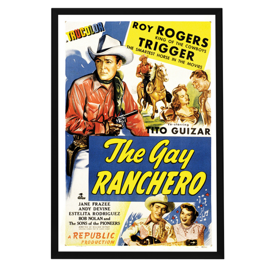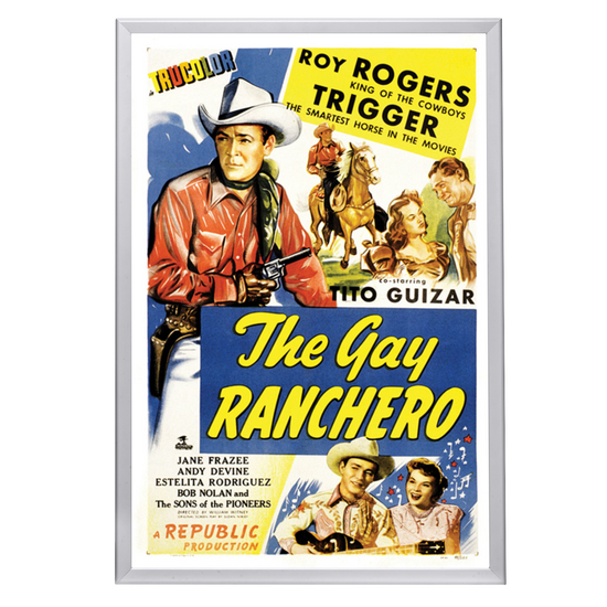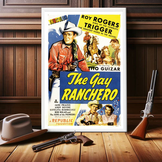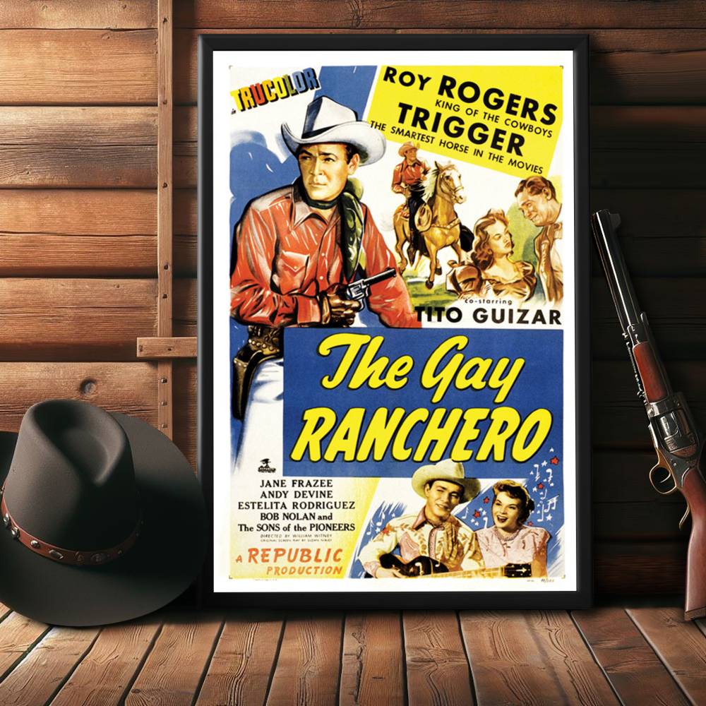 Own a slice of Western glory with the framed "Gay Ranchero" (1948) movie poster, presented in a Snapezo Professional Frame for a clear, timeless display.