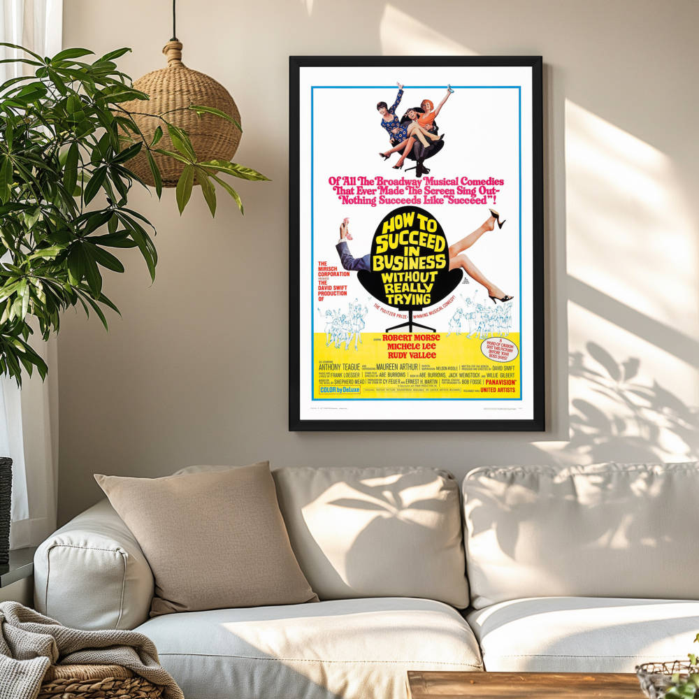 Collect the 1967 "How to Succeed in Business" framed poster in an antiglare Snapezo frame. High-quality reprint captures the film's iconic satire.