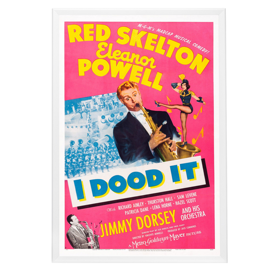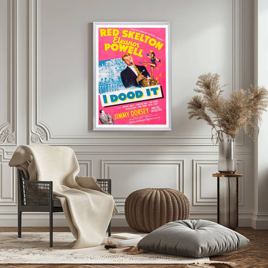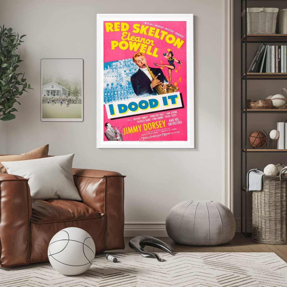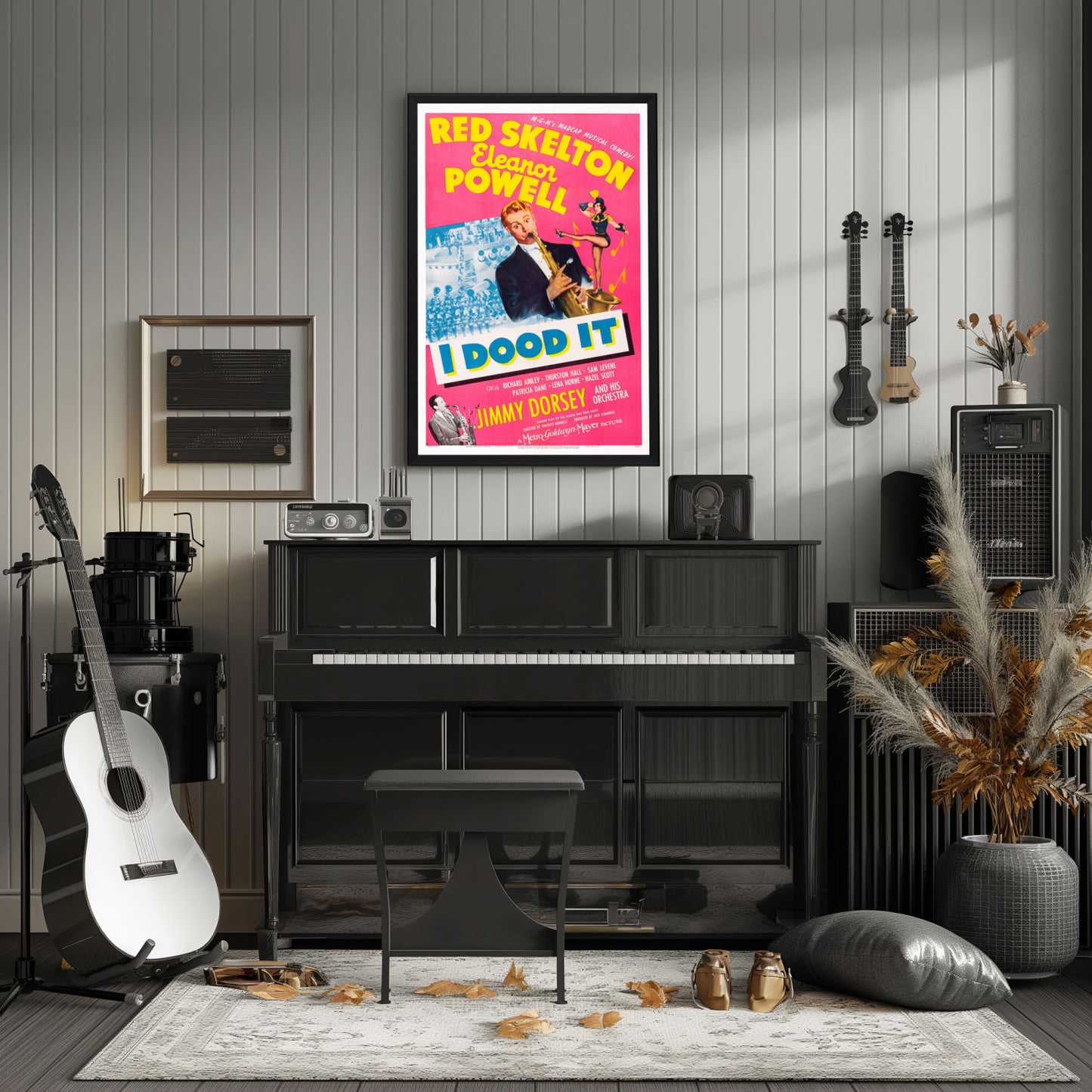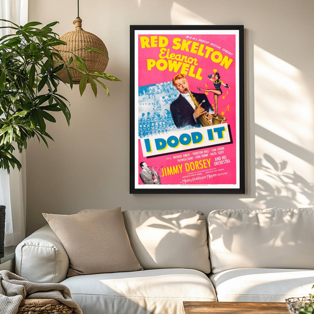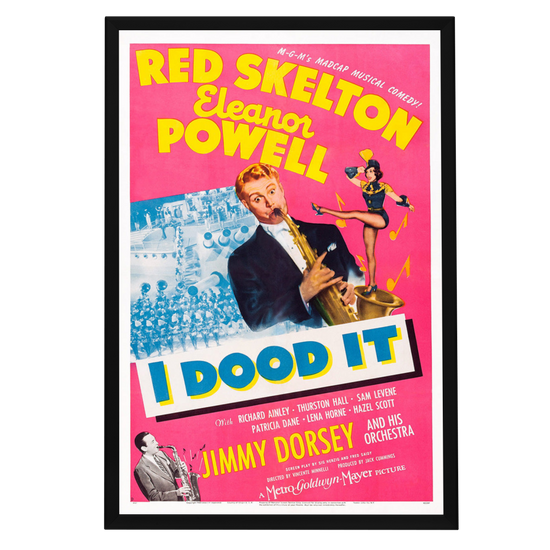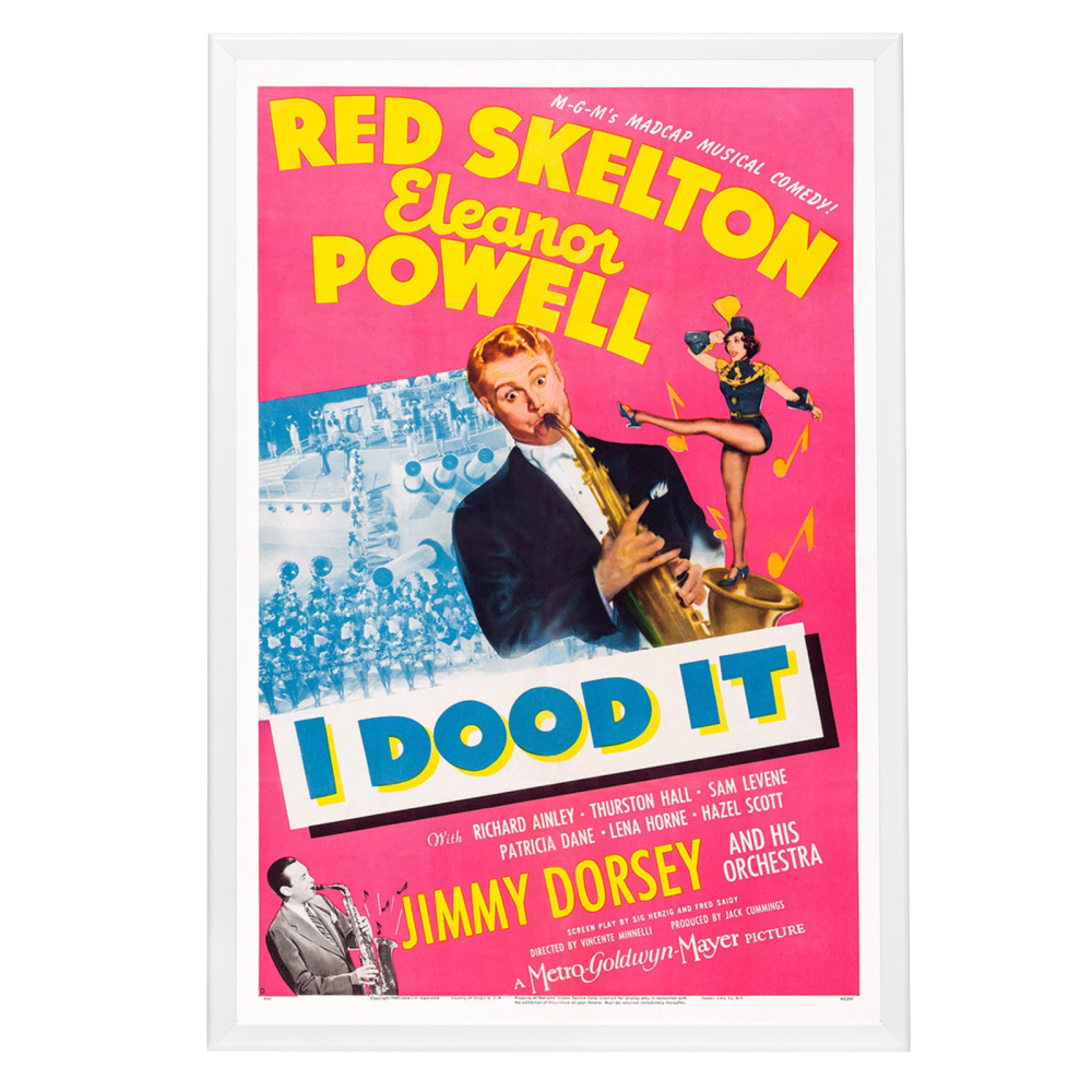 Immerse yourself in the nostalgia of Golden Age Hollywood with this exquisite framed reprint of the "I Dood It" movie poster. This poster is a celebration of a classic 1943 musical comedy, starring the legendary Red Skelton alongside the enchanting Eleanor Powell. Directed by the acclaimed Vincente Minnelli, "I Dood It" was renowned for its comedic brilliance and musical enchantments, featuring the heartwarming song "Star Eyes. " This poster artfully captures the film's vivacious spirit and serves as a unique collectible for cinema aficionados and fans of the era.