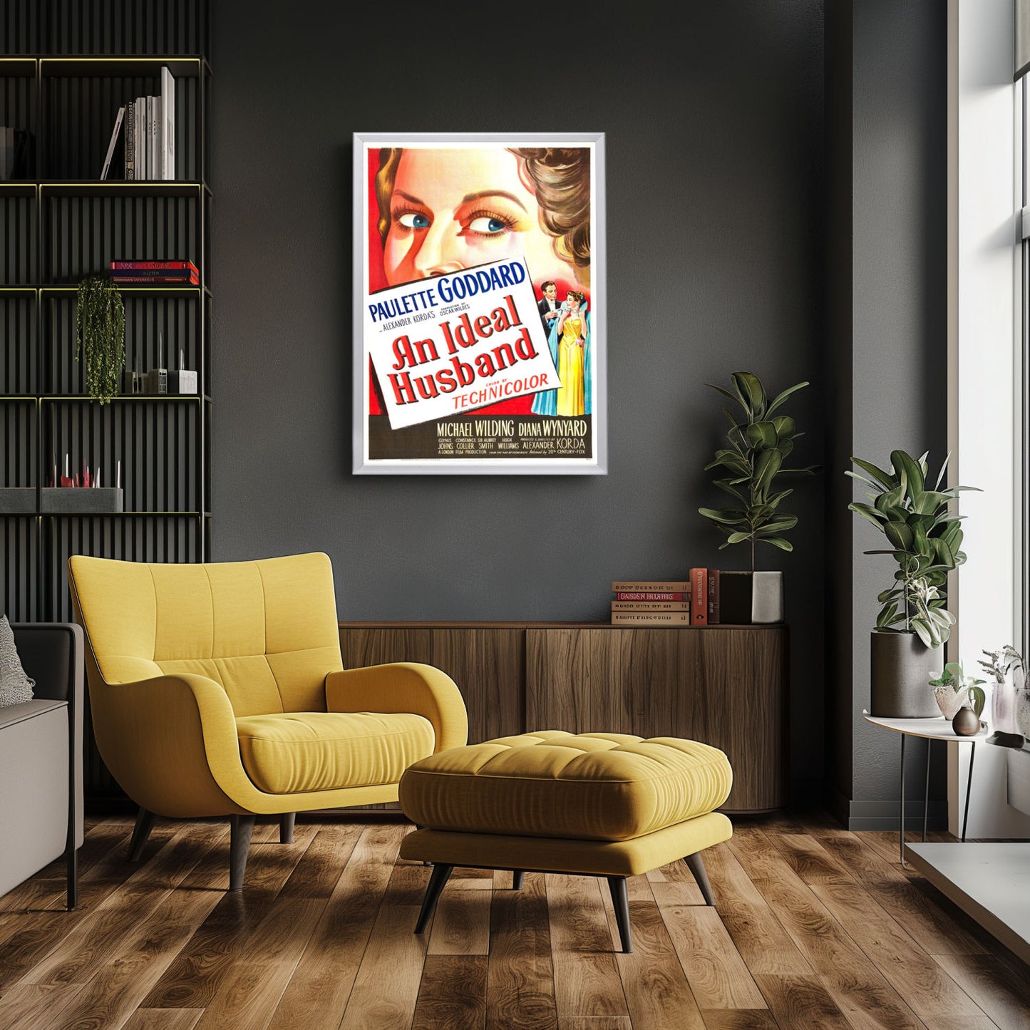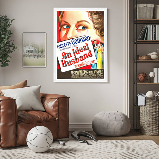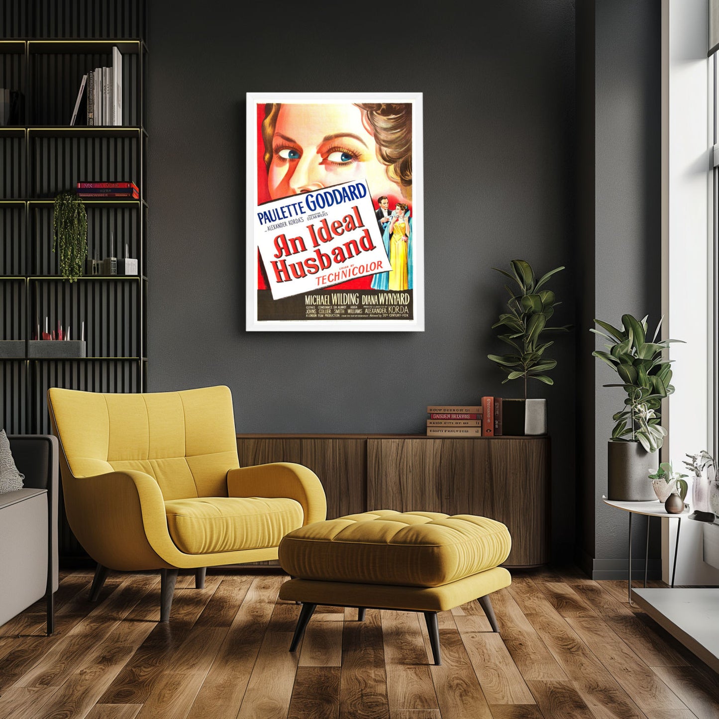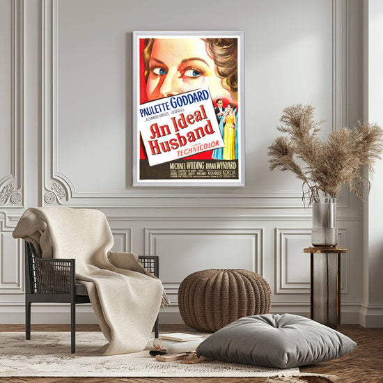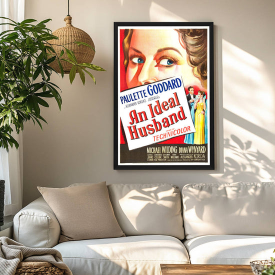 Elevate your space with the 1947 "An Ideal Husband" framed poster, featuring Oscar Wilde's wit and the premium Snapezo anti-glare frame. A classic cinema treasure.