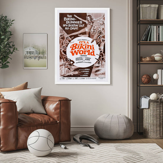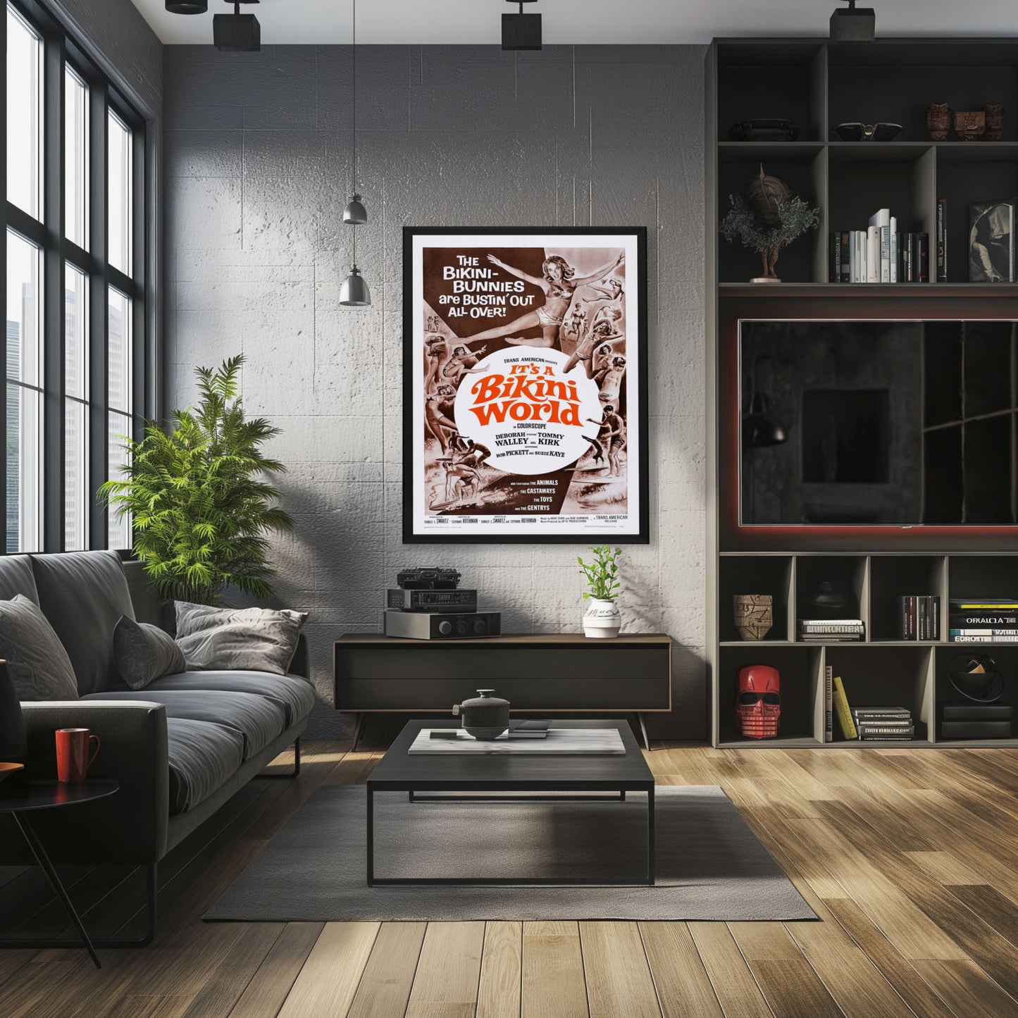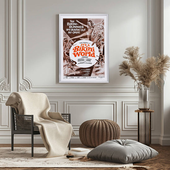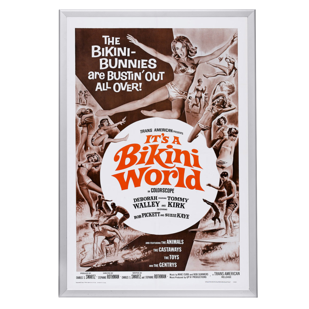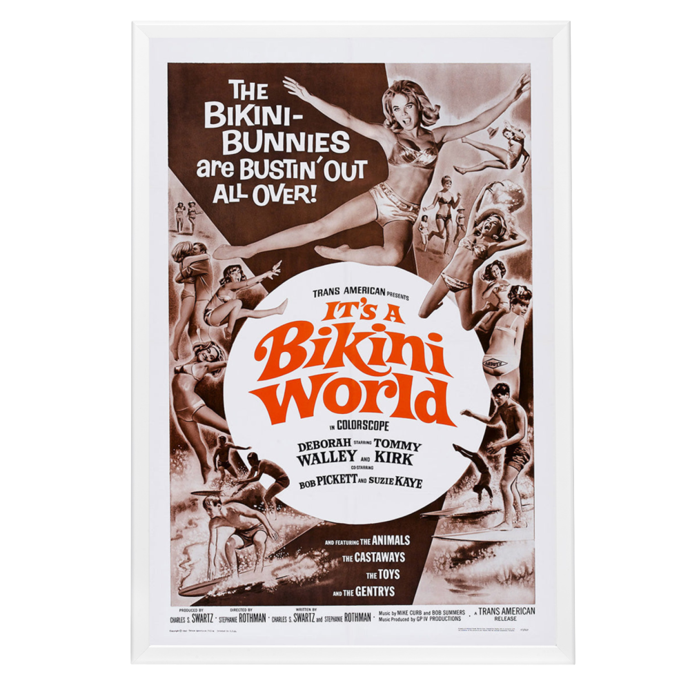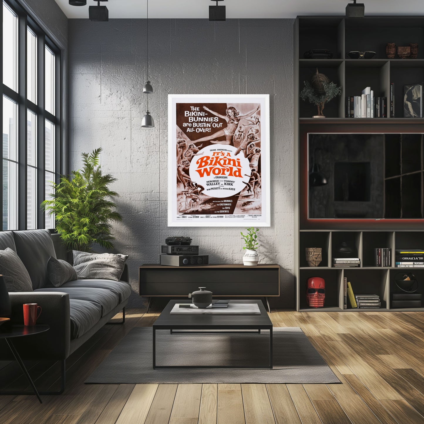 Evoke the spirit of the swinging '60s with the iconic "It's A Bikini World" (1967) movie poster, encased in a top-tier Snapezo Professional Movie Poster Frame. This particular poster harkens back to the height of beach party films—a genre that defined an era with its upbeat music, carefree attitudes, and, of course, its celebration of the era's fashion, epitomized by the bikini.
