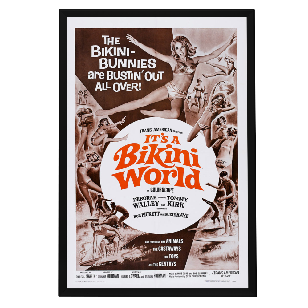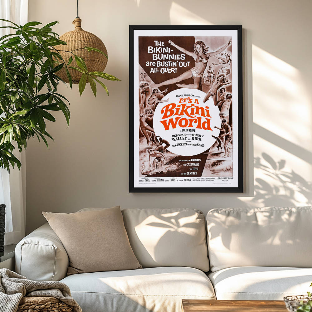 Bring the breezy charm of "It's A Bikini World" into your space with this impeccable combination of vintage appeal and modern display technology, perfect for adding a touch of '60s cool to any home cinema, retro-themed restaurant, or stylish living room.