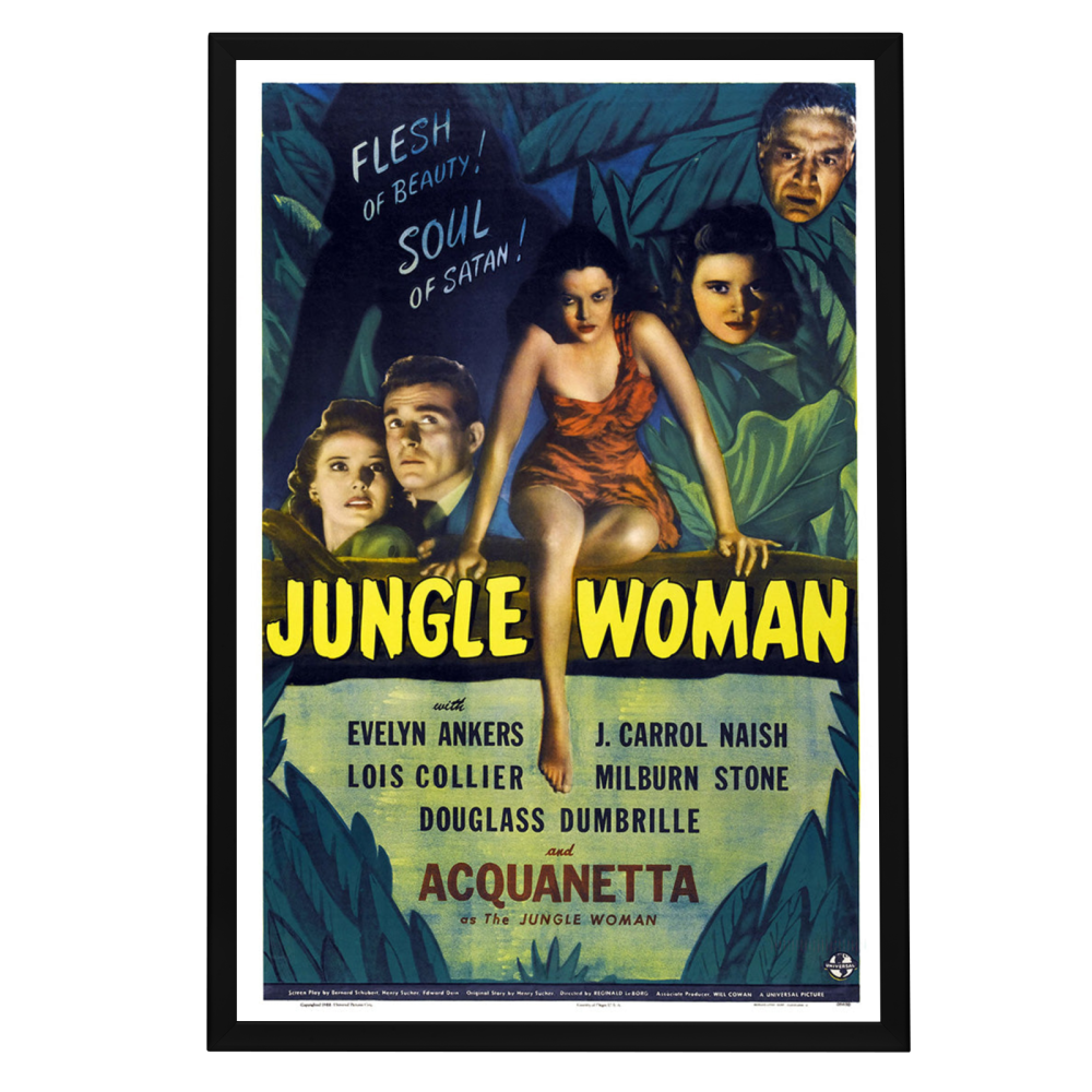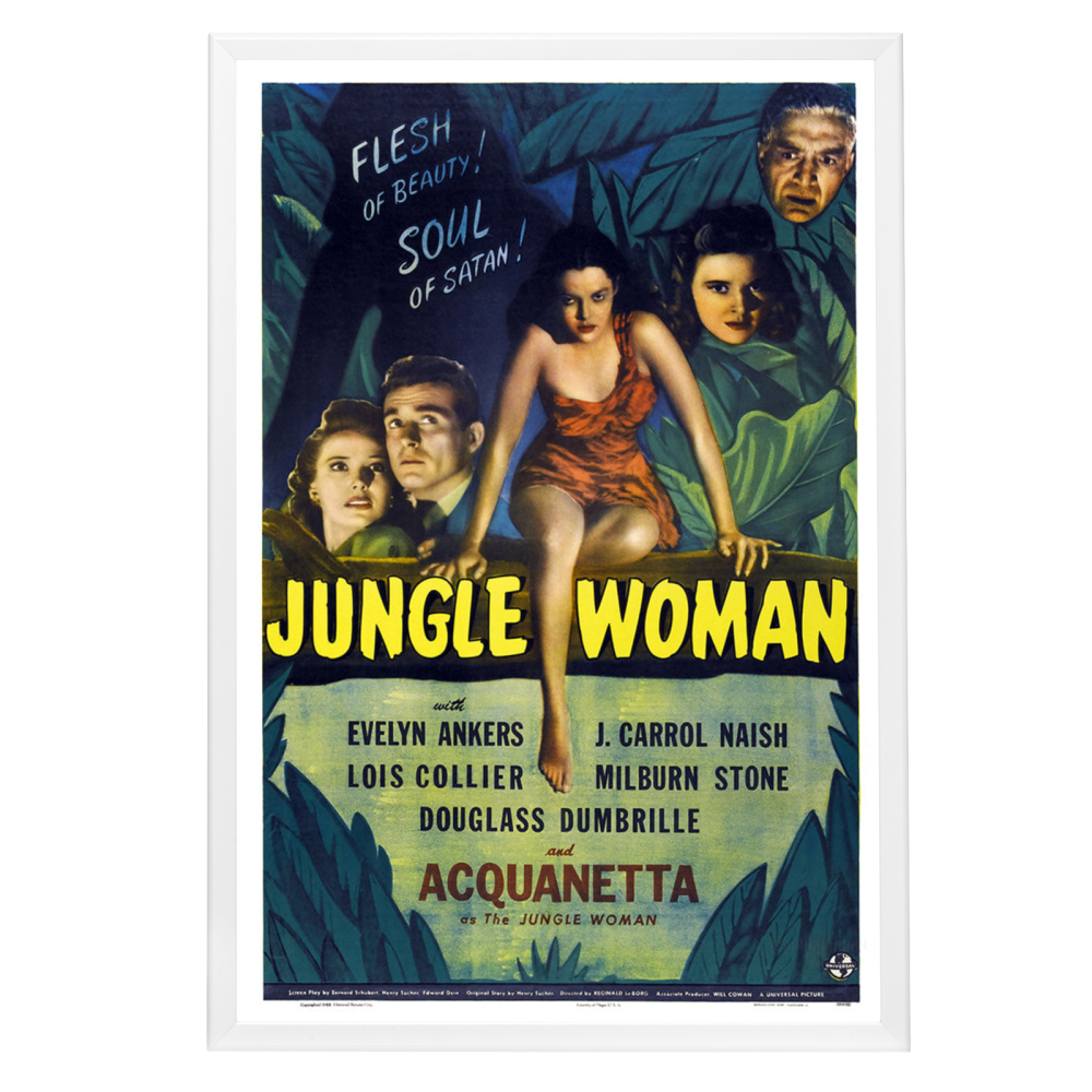 Whether you're a classic film buff or a connoisseur of vintage movie posters, this framed "Jungle Woman" movie poster is a testament to the enduring legacy of 1940s horror flicks. It's a conversation starter, a piece of history, and a work of art all in one, making it an impeccable addition to any collection or decor.