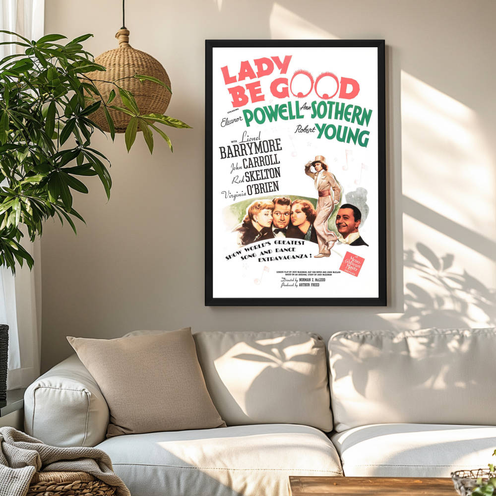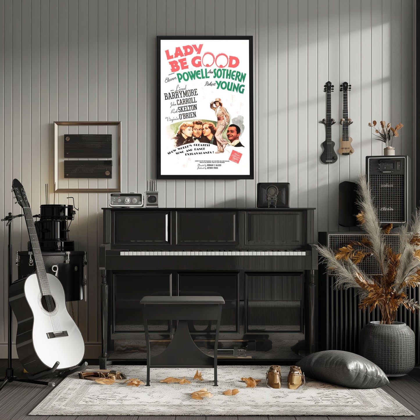 Own a piece of Hollywood history with the framed "Lady Be Good" movie poster in a Snapezo Professional Frame. High-quality, timeless appeal, no glare.