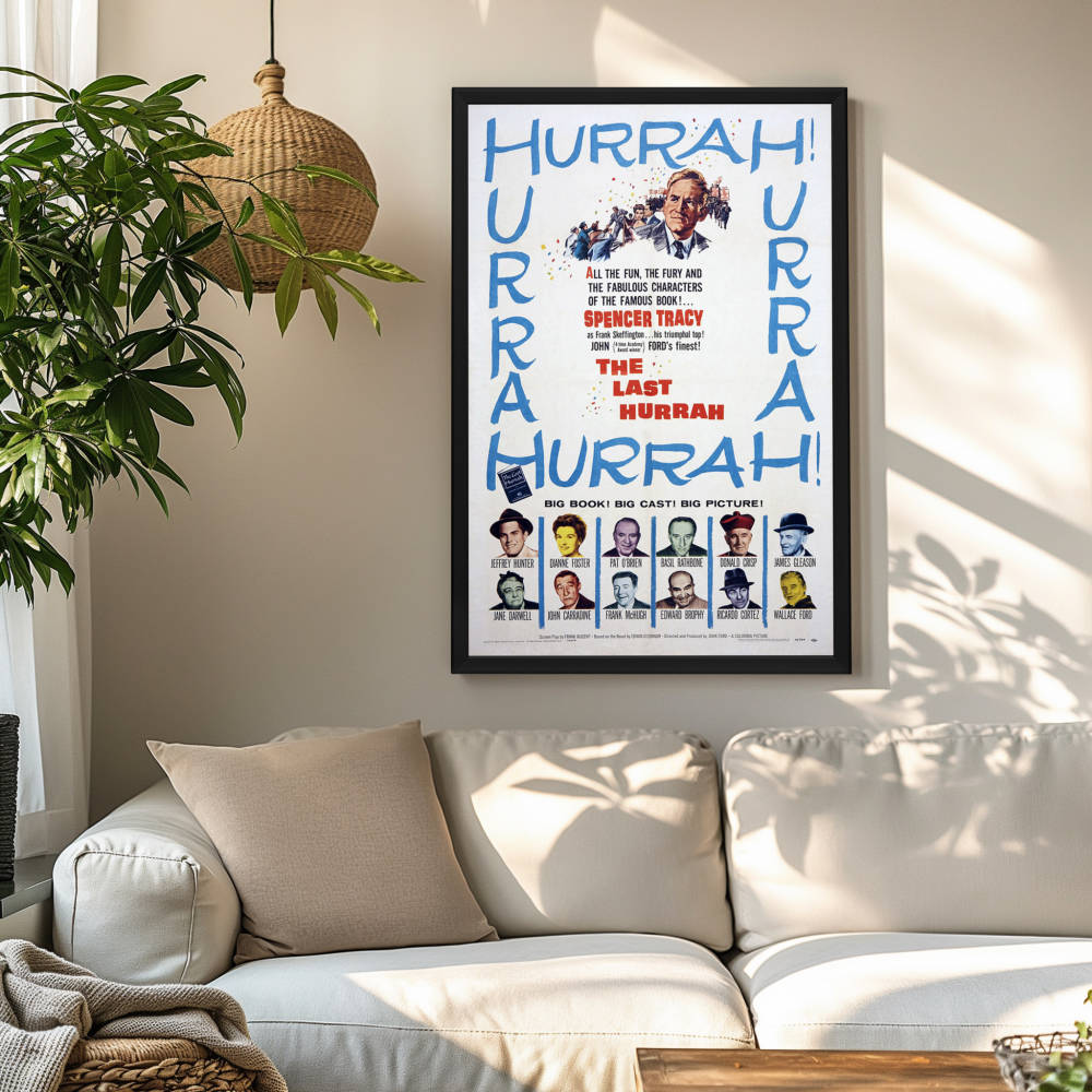The "Last Hurrah" poster featured is not merely a digital print; it is a high-quality reprint, meticulously crafted to honor the original artwork that once graced theaters during the film's release. The striking imagery, with its bold colors and vintage design, invites you to immerse yourself in the world of 1950s American politics, evoking a sense of nostalgia and reverence for the era.