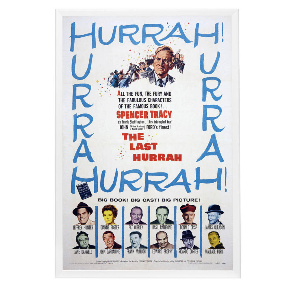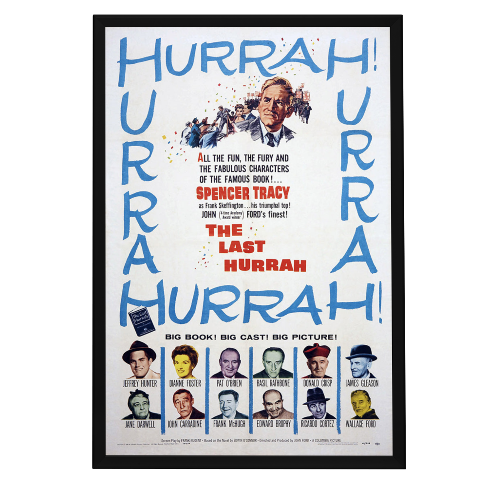 Experience a slice of cinematic history with the "Last Hurrah" framed movie poster, a testament to the 1958 political drama directed by the legendary John Ford. This exquisite reprint captures the essence of a film that has resonated with audiences and critics alike for its poignant portrayal of an aging politician's final campaign. Starring Spencer Tracy in one of his most memorable roles, the film received high praise for its storytelling and strong performances, making the poster an iconic piece for collectors and enthusiasts.