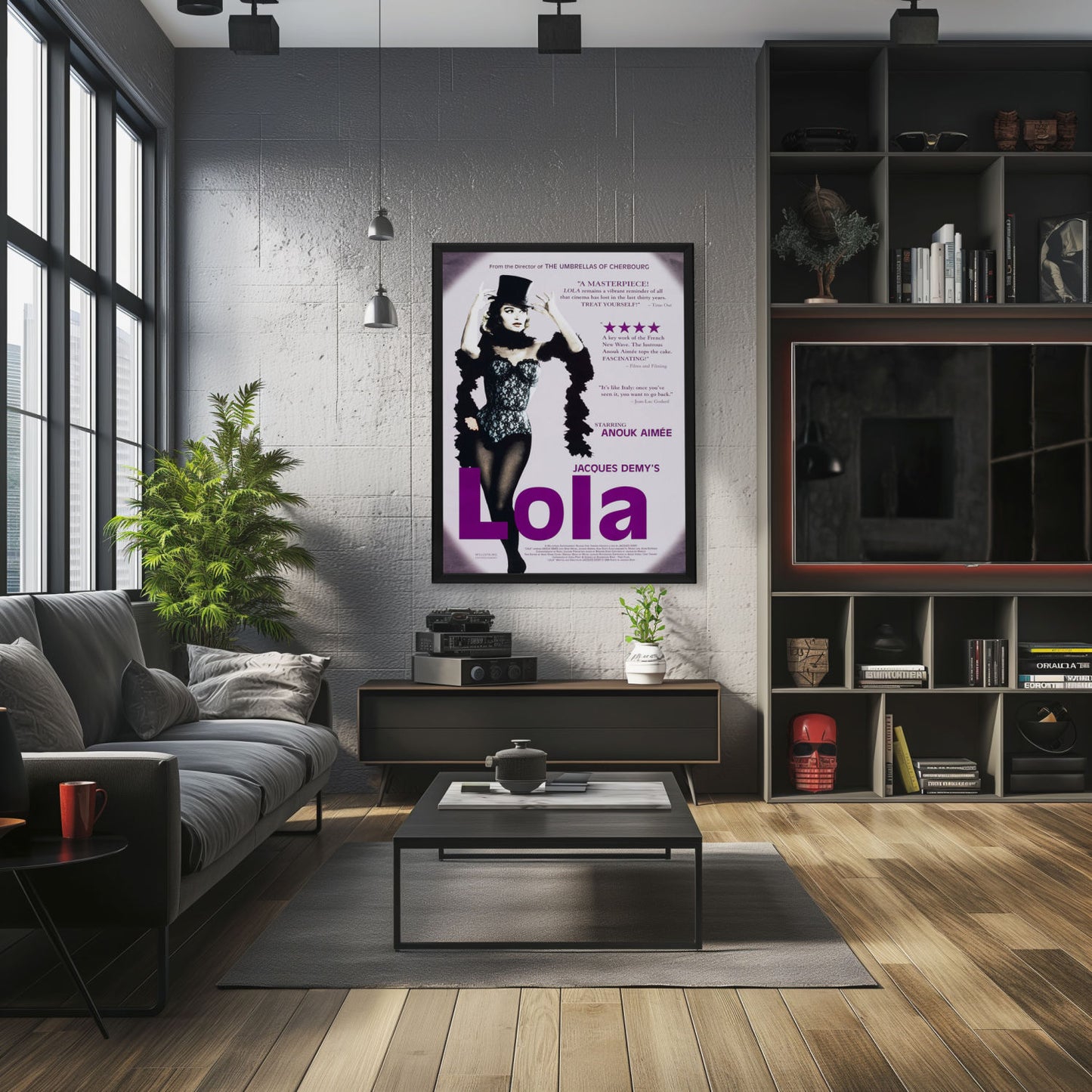 The Snapezo Professional Movie Poster Frame is designed to enhance and protect this exquisite artwork. The frame features a clear, antiglare cover that allows viewers to appreciate the poster without the interference of reflections or fingerprints, ensuring the image remains the focal point. The Snapezo frame is not just a boundary; it's a gateway to the timeless elegance of "Lola," drawing in admirers with its sleek, professional appearance that complements any decor.