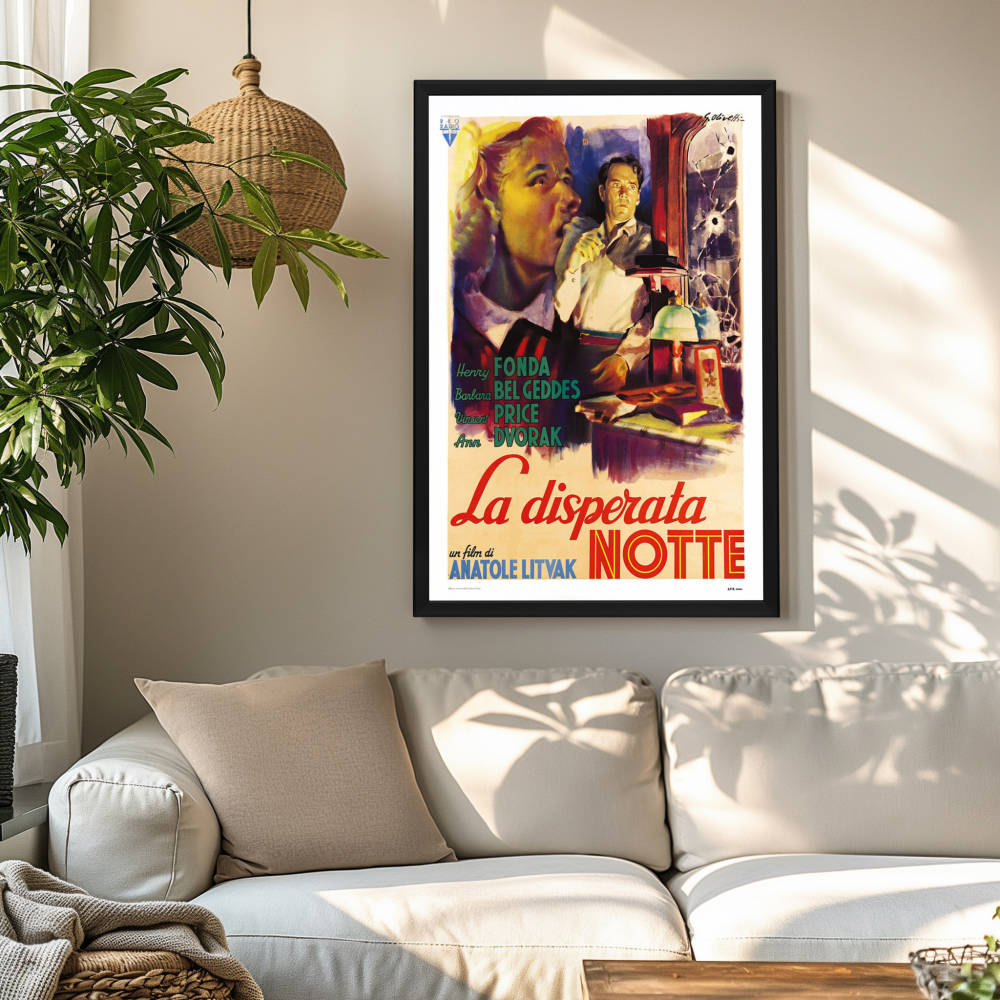 The "Long Night" poster is not a mere digital print; it is a carefully crafted reprint that honors the artistry of the original design. With its deep, rich colors and sharp details, this framed poster commands attention and admiration, making it a perfect centerpiece for any classic film enthusiast's collection.